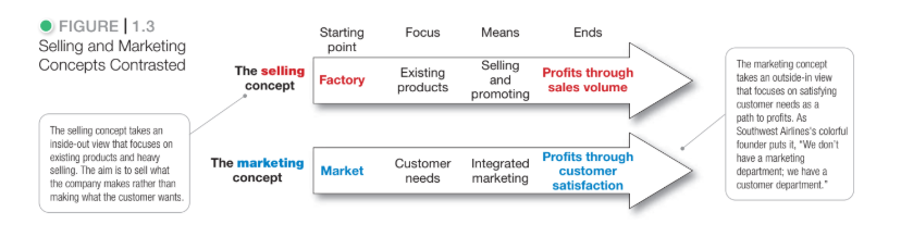 Selling concept is the idea that consumers will not buy enough of the firm’s products unless the firm undertakes a large-scale selling and promotion effort.