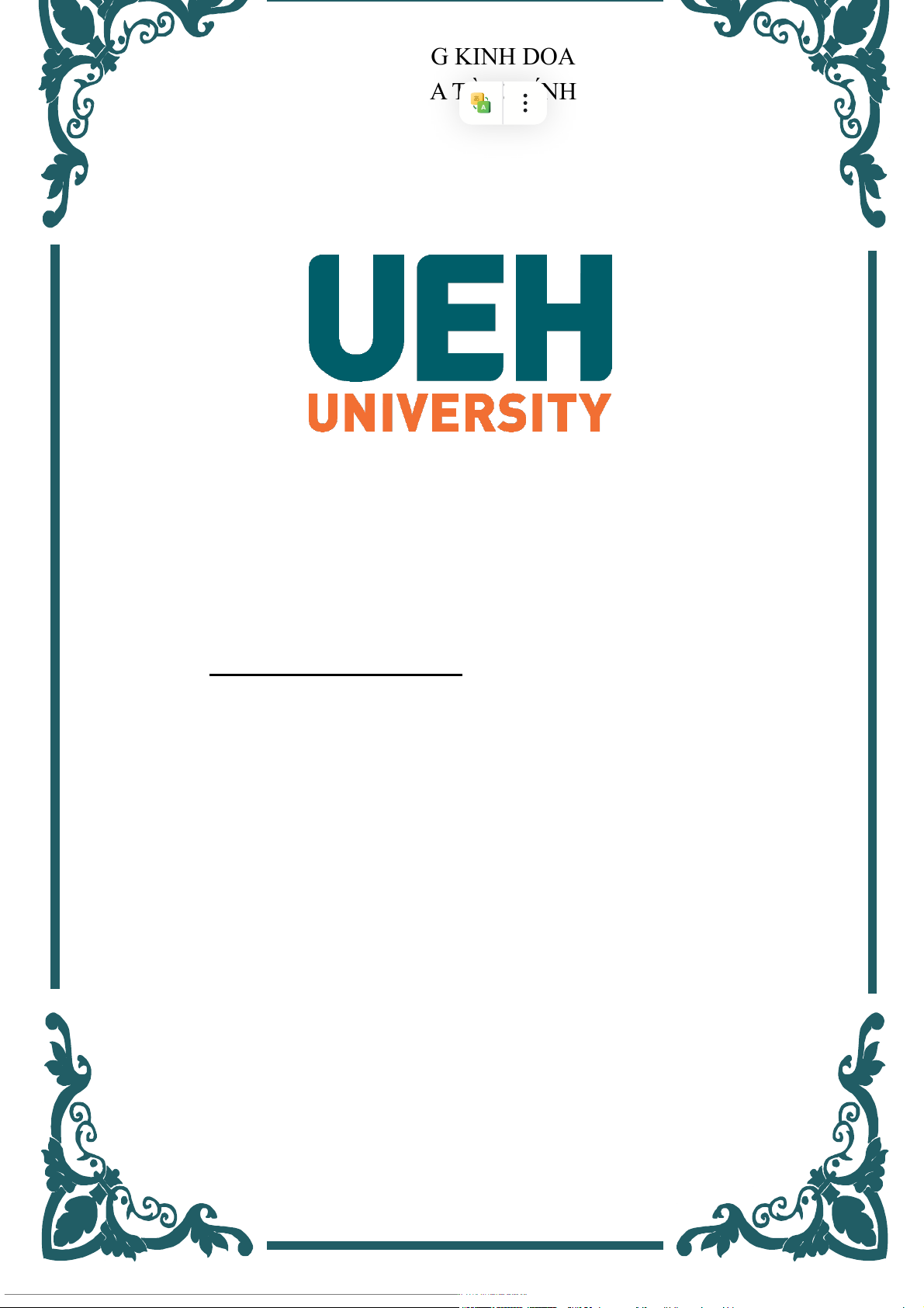 ĐẠI HỌC UEH TRƯỜNG KINH DOANH KHOA TÀI CHÍNH