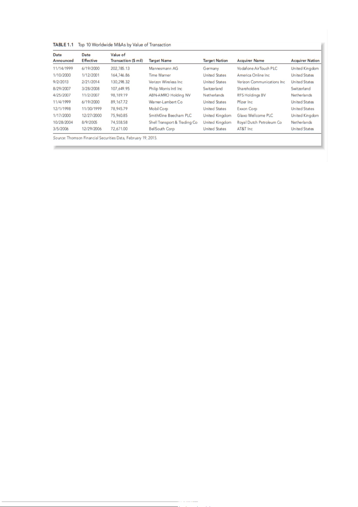 Hình 1.2 Top 10 thương vụ M&A trên toàn thế giới theo giá trị giao dịch