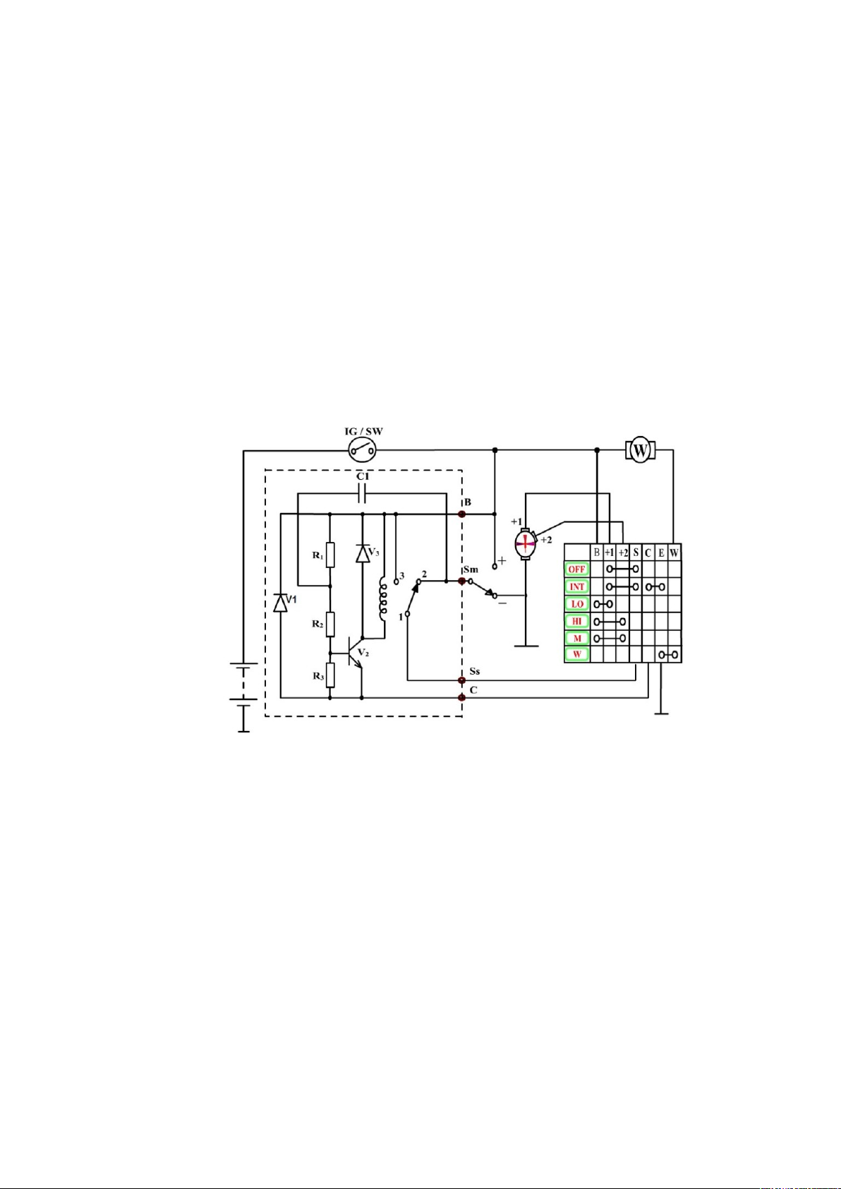 4. Trình bày quy trình đo kiểm xác định chân của motor gạt mưa, công tắc điều khiển gạt mưa theo sơ đồ mạch sau?