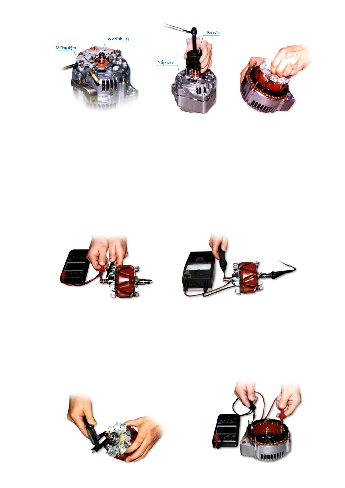 Hình 57. Kiểm tra cách điện Stator Hình 58. Kiểm tra diode chỉnh lưu