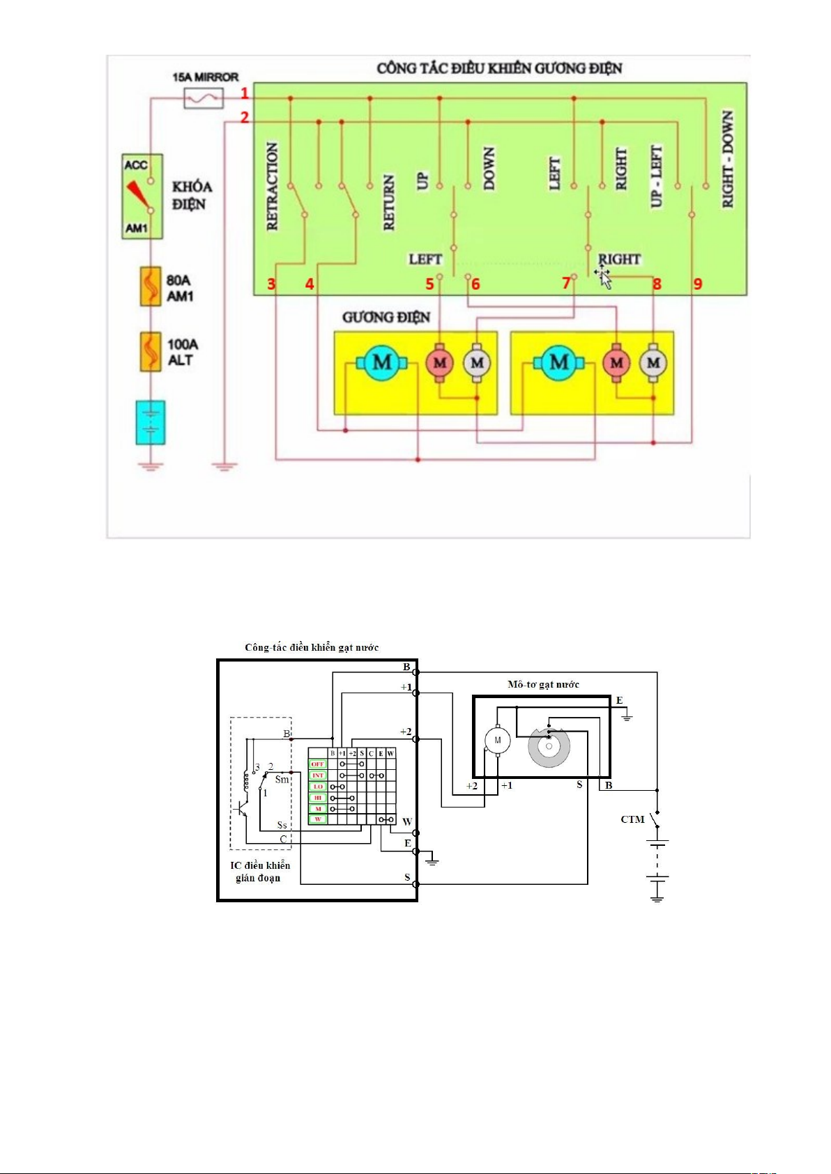 2. Trình bày đo kiểm, xác định các chân từ 1 đến 9 của công tắc gập gương theo sơ đồ sau? Chú thích tên các chân theo số đã đánh.