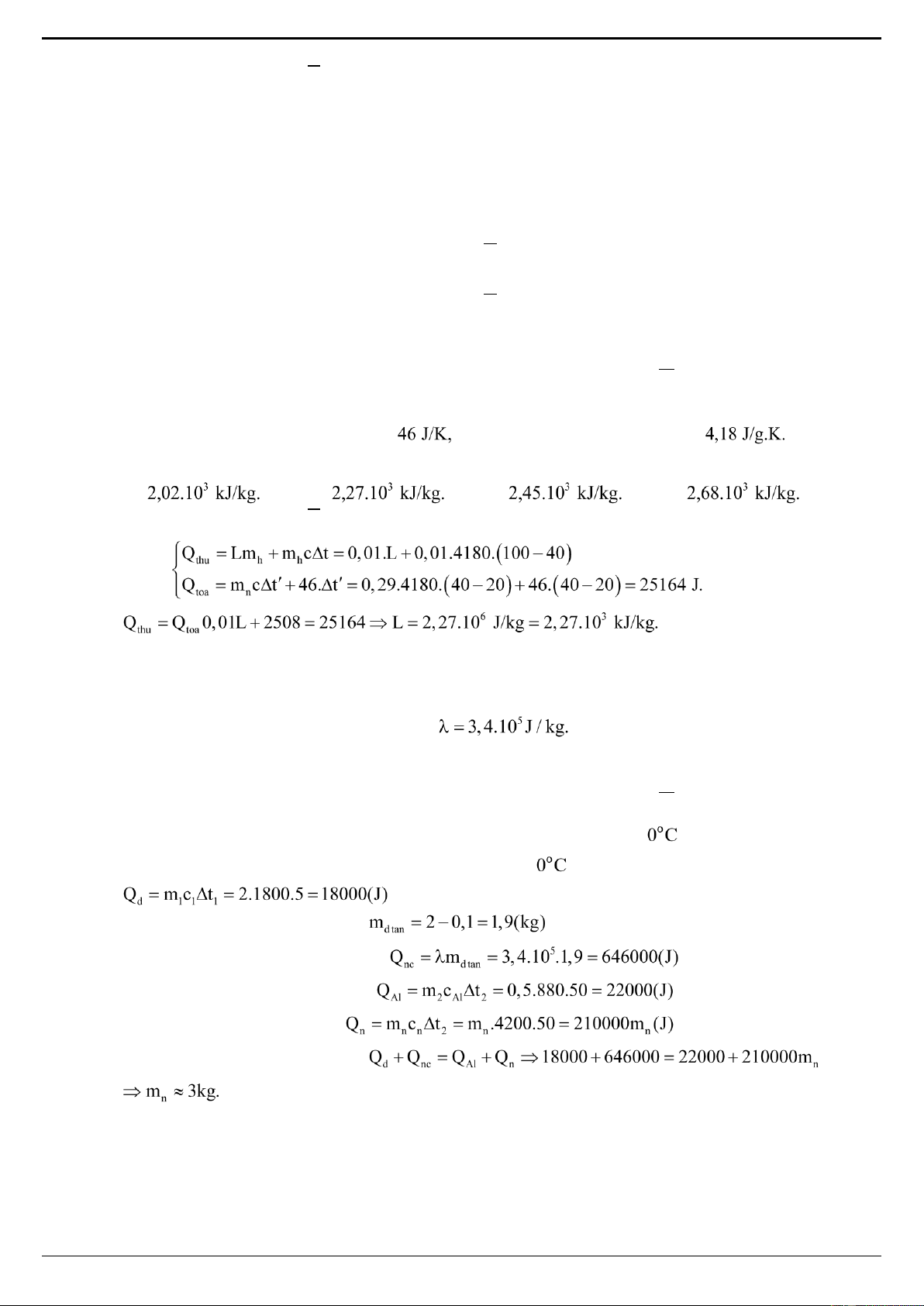 Gọi m là khối lượng nước đã bị hóa hơi, ta có m c T + m L = Q thay số ta có n ci 6