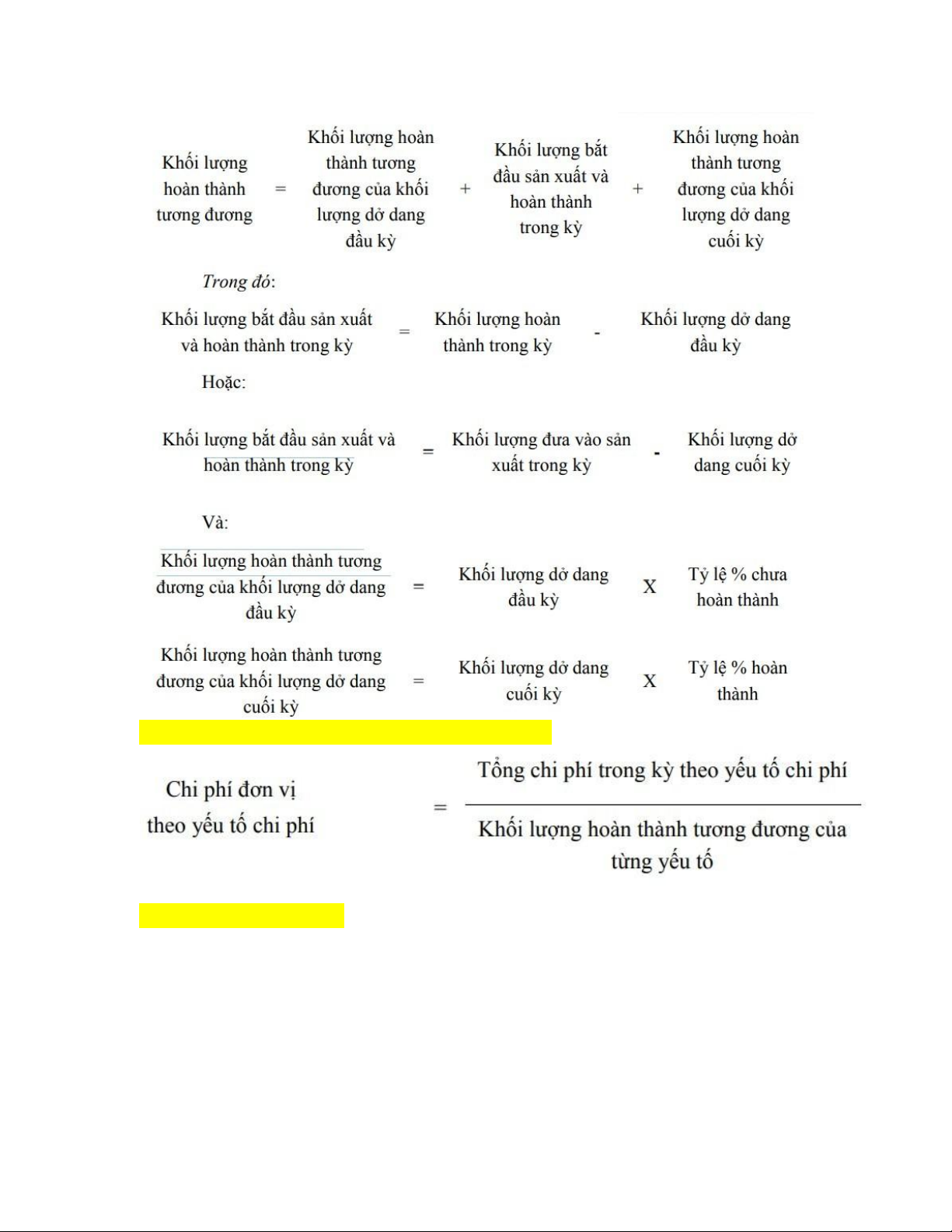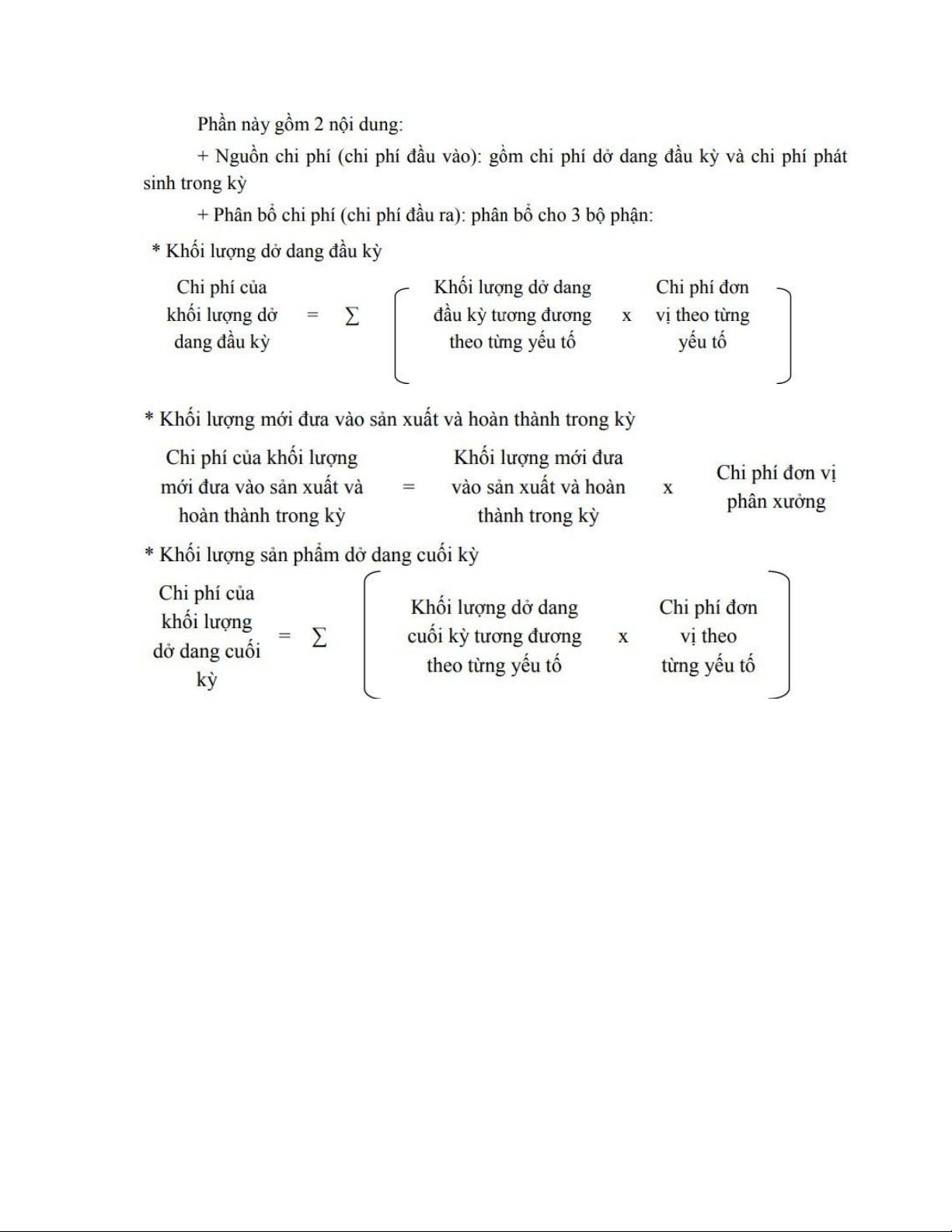 Chi phí của khối lượng dở dang cuối kỳ = ∑ (Khối lượng dở dang cuối kỳ