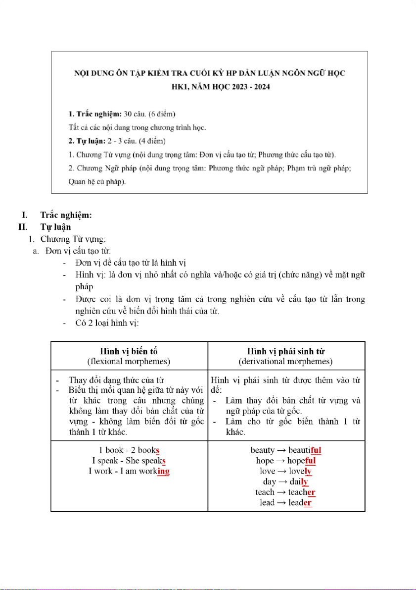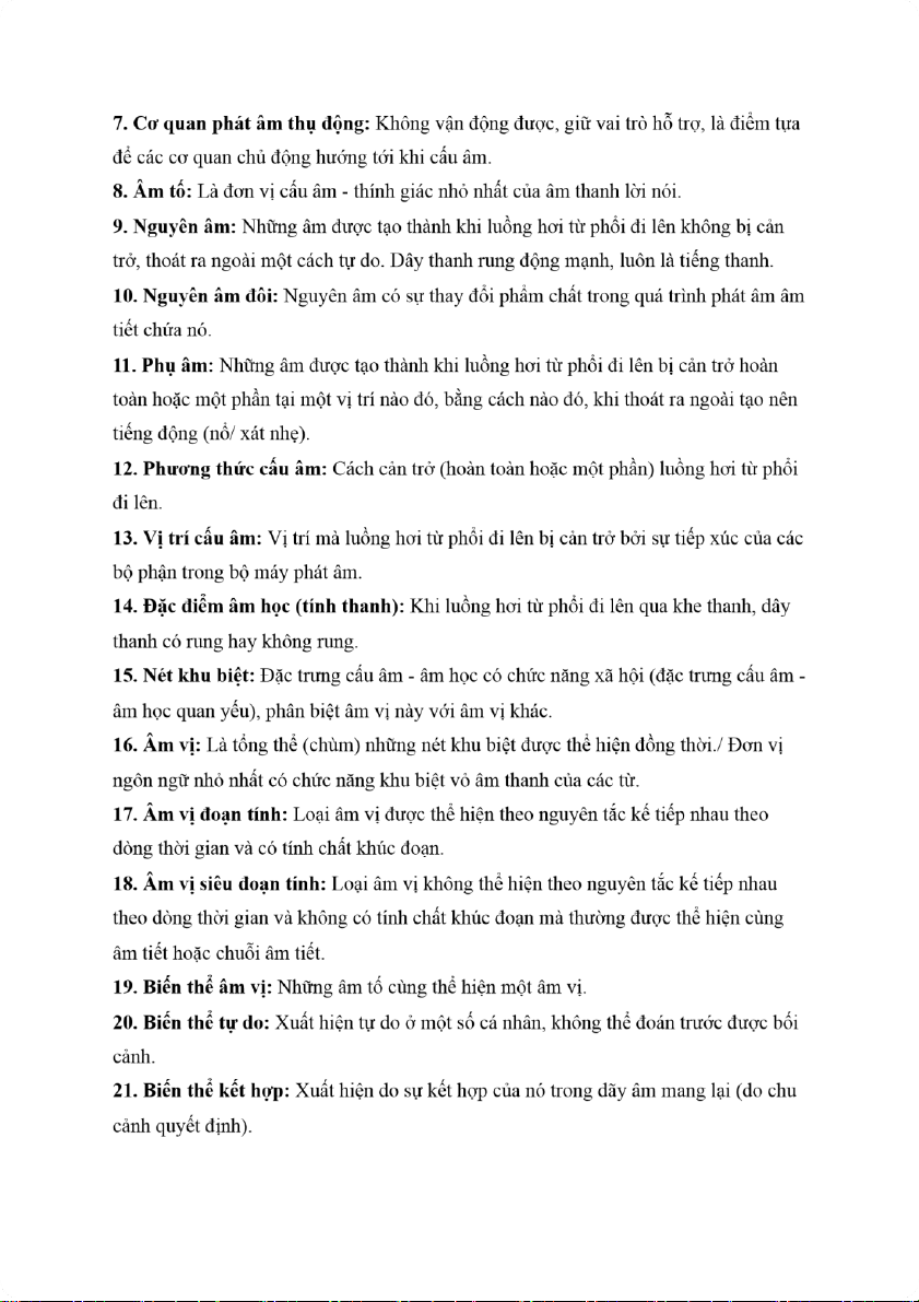 22. Âm tiết: Đơn vị phát âm tự nhiên nhỏ nhất của lời nói, cấu trúc gồm có nguyên
