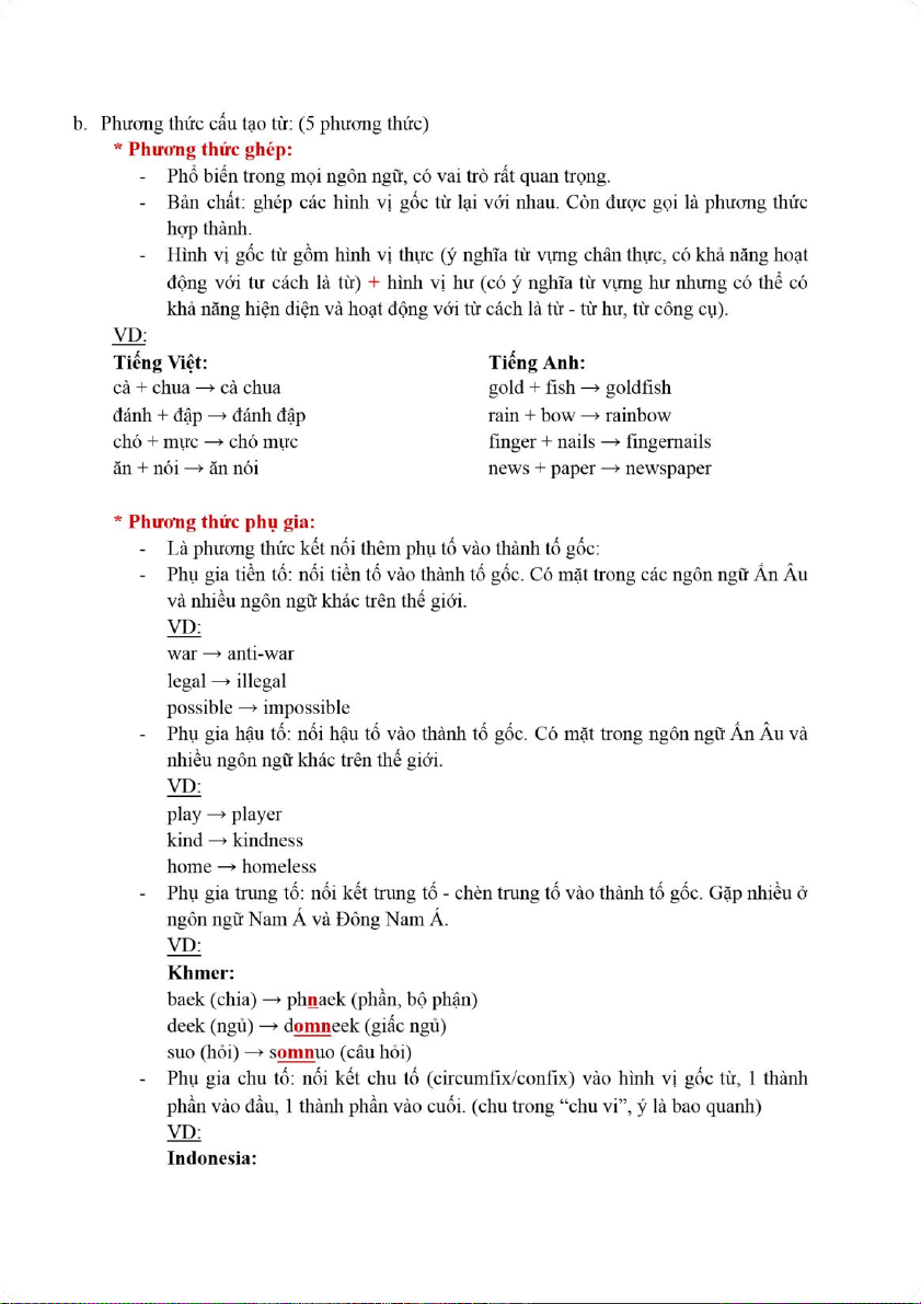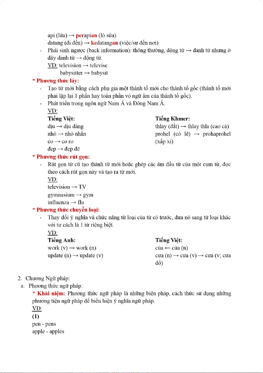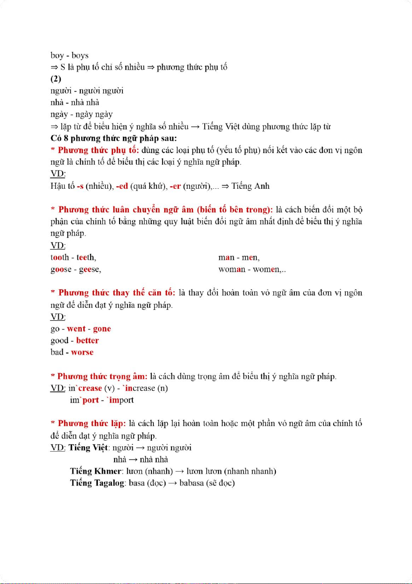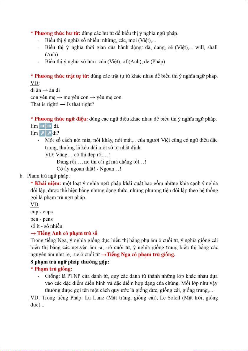+ Các ngôn ngữ không biến hình: biểu hiện bằng trật tự từ. VD: Đường xa. Áo ướt.