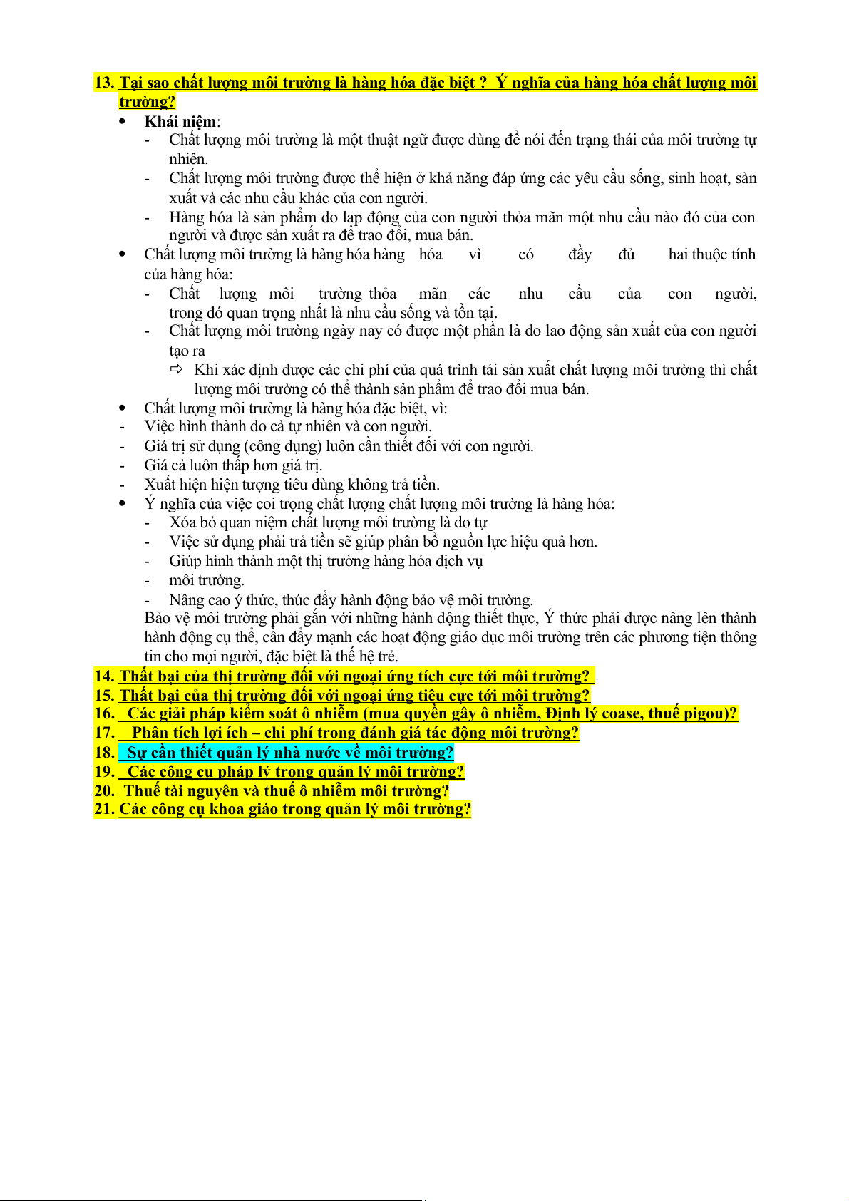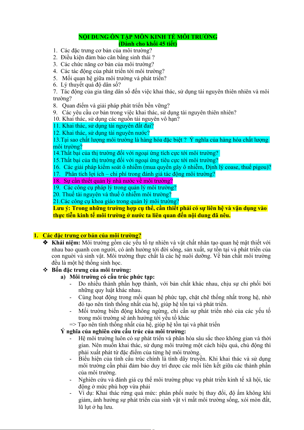 NỘI DUNG ÔN TẬP MÔN KINH TẾ MÔI TRƯỜNG