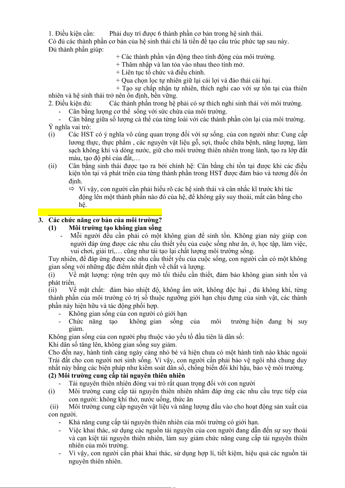 3. Các chức năng cơ bản của môi trường?