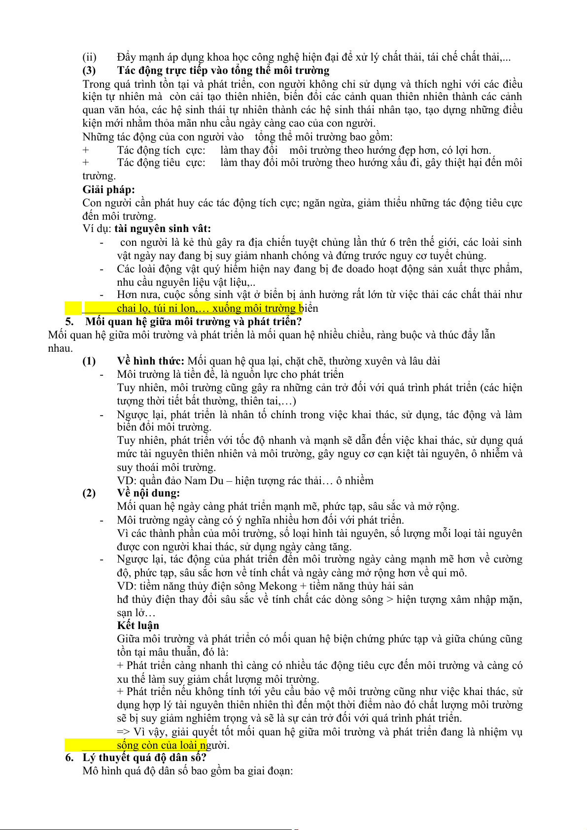 5. Mối quan hệ giữa môi trường và phát triển?