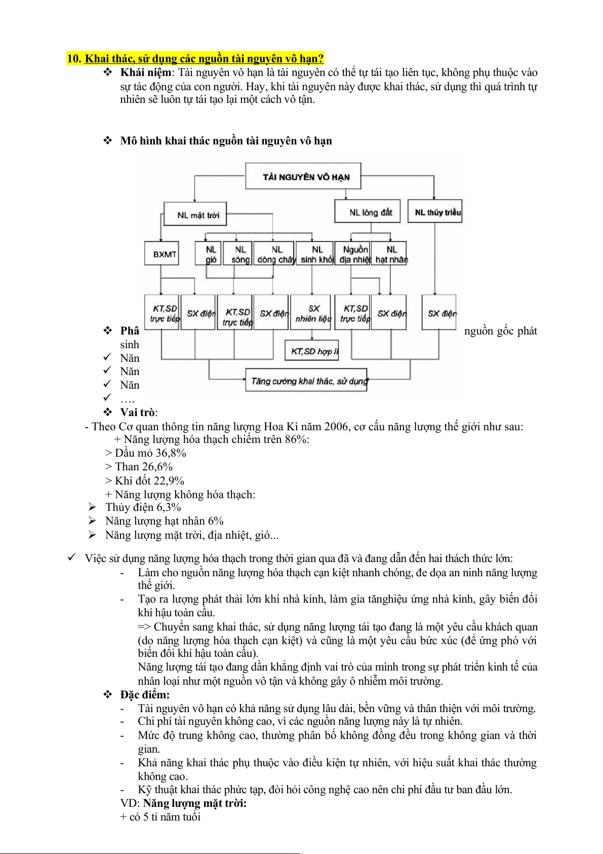 10. Khai thác, sử dụng các nguồn tài nguyên vô hạn?