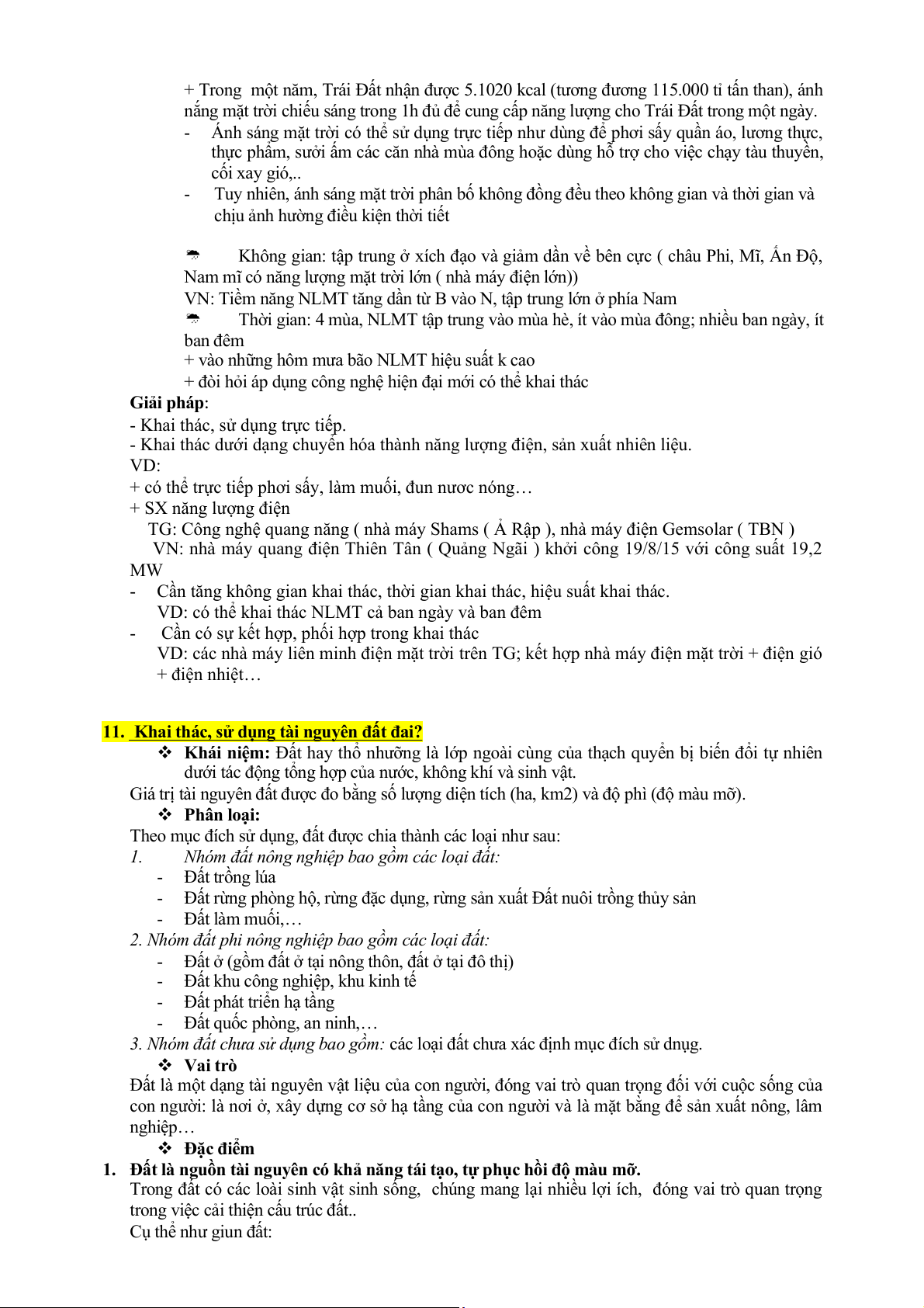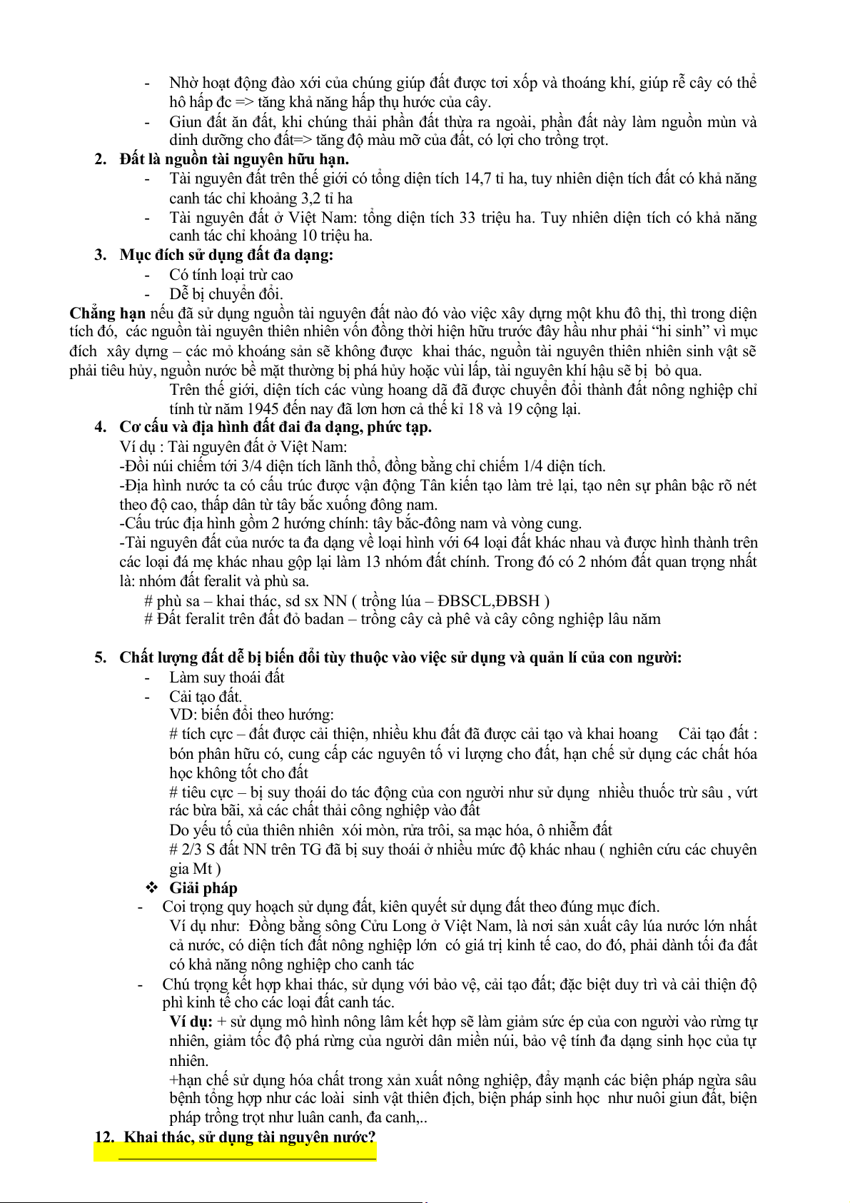 11. Khai thác, sử dụng tài nguyên đất đai?