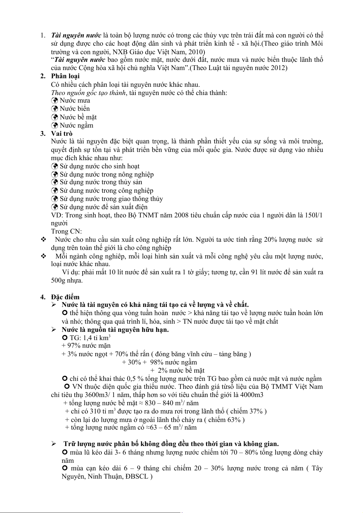 Nước là tài nguyên có khả năng tái tạo cả về lượng và về chất.