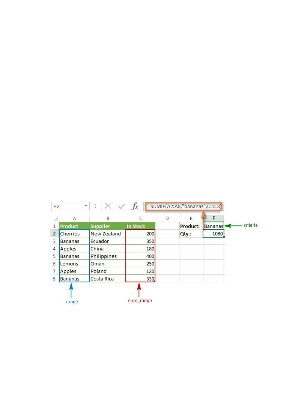 b)SUMIF: =SUMIF (range, criteria, [sum_range]) c) SUMIFS: