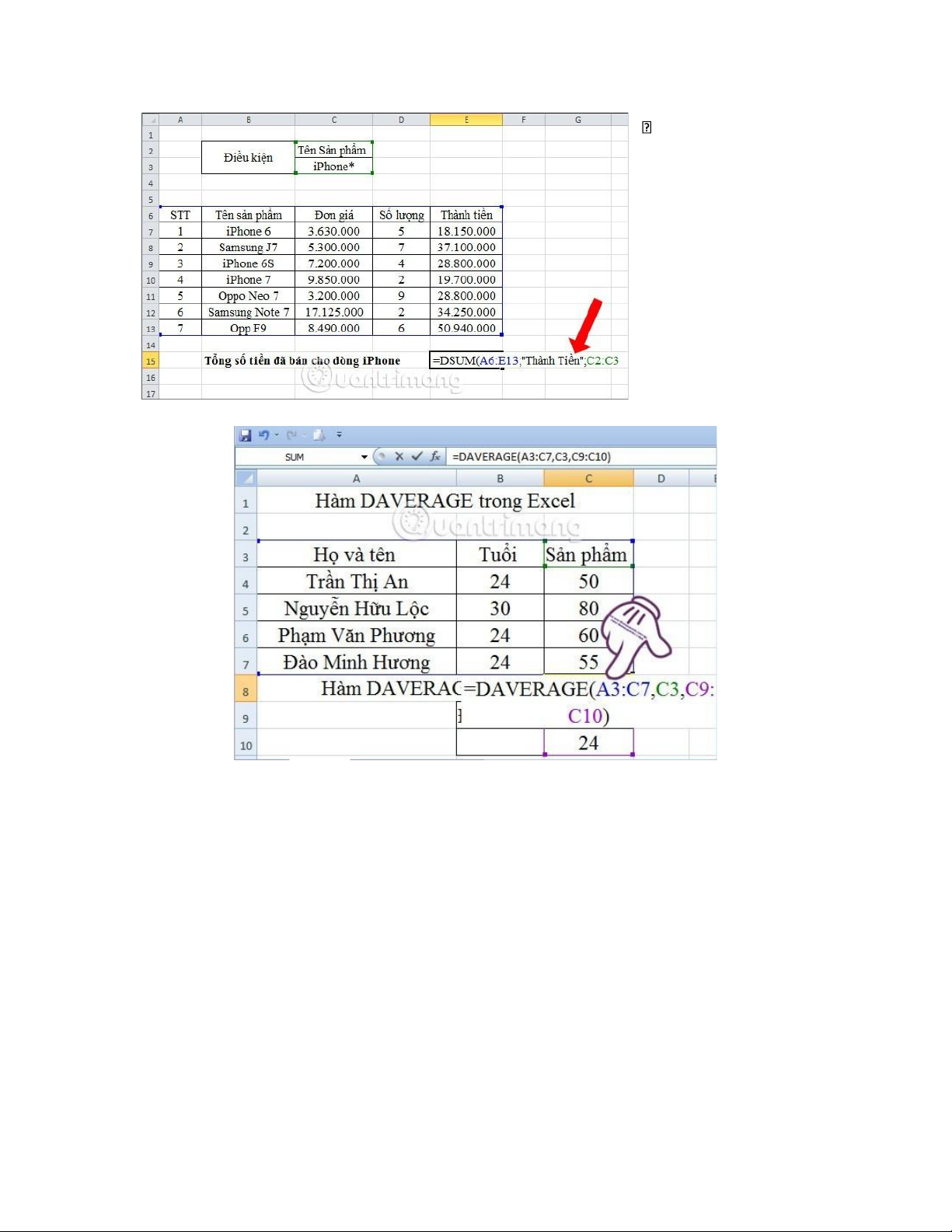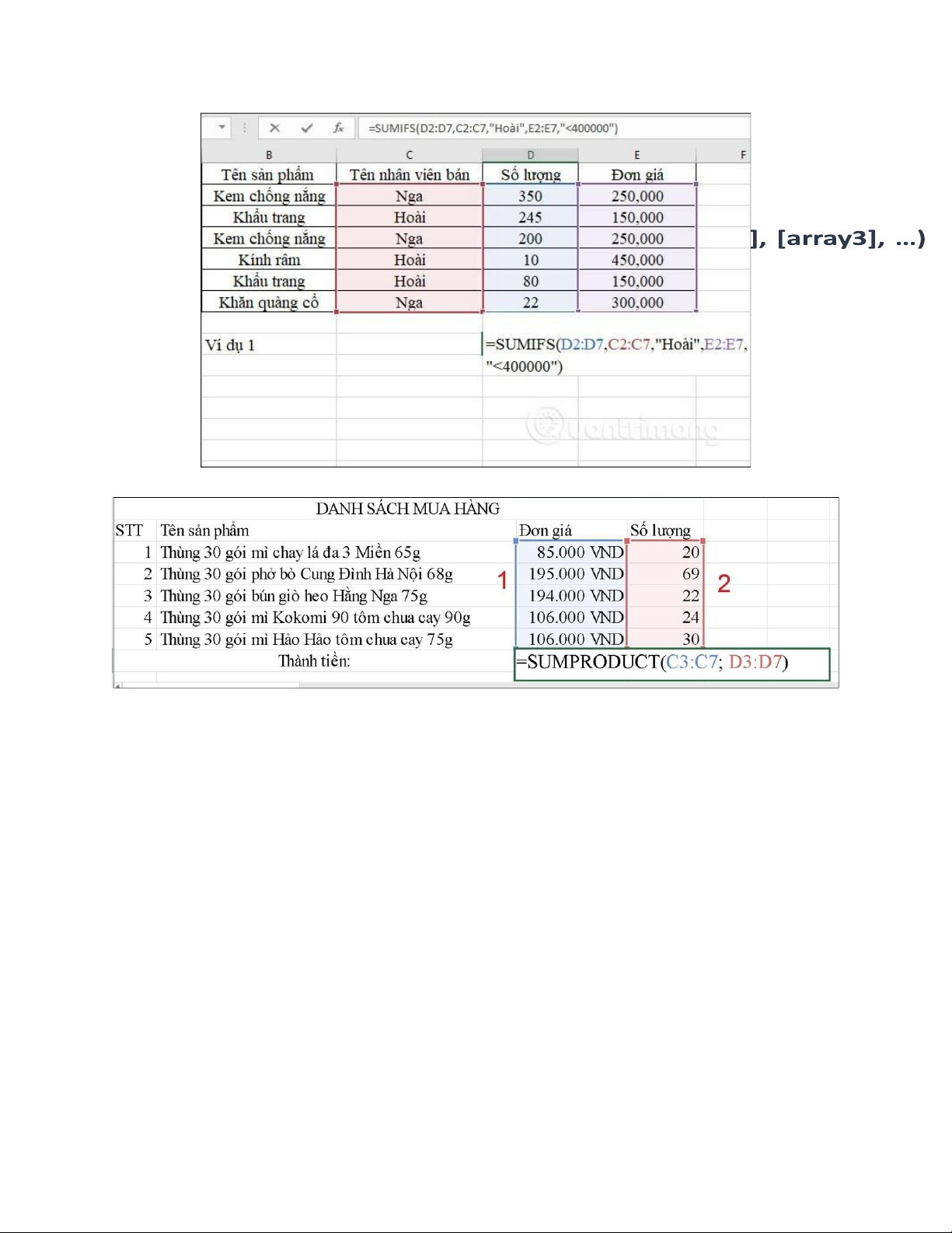 1. Nhóm hàm toán học: SUM, SUMIF, SUMIFS, SUMPRODUCT, IF