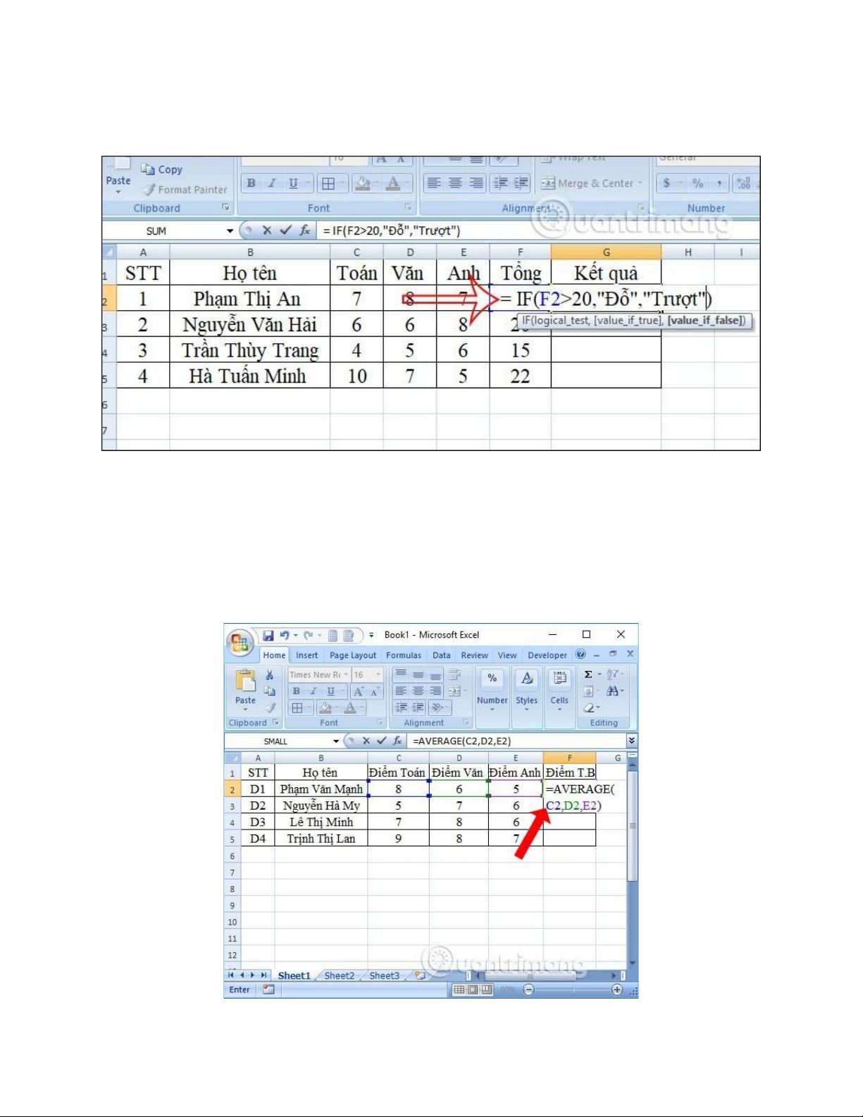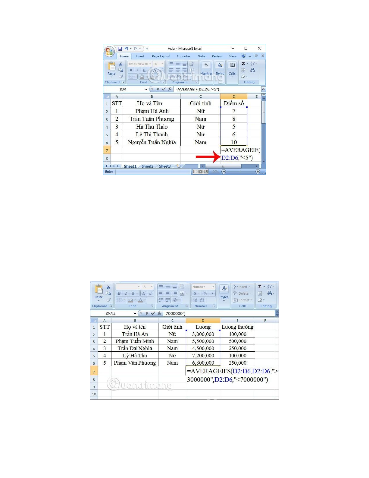 2. Nhóm hàm thống kê: AVERAGE, AVERAGEIF, AVERAGEIFS,