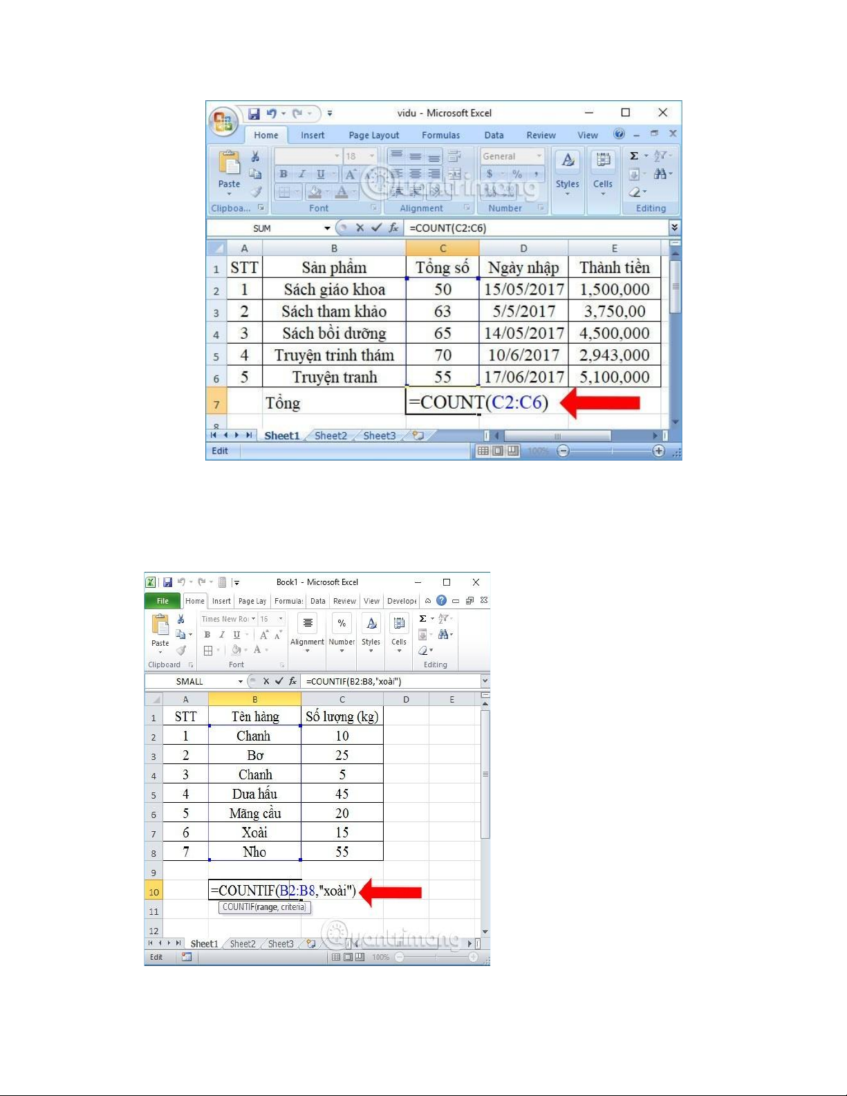 Lưu ý: Hàm COUNT đếm ô chỉ chứa số, còn COUNTA đếm ô không trống, bao gồm cả số