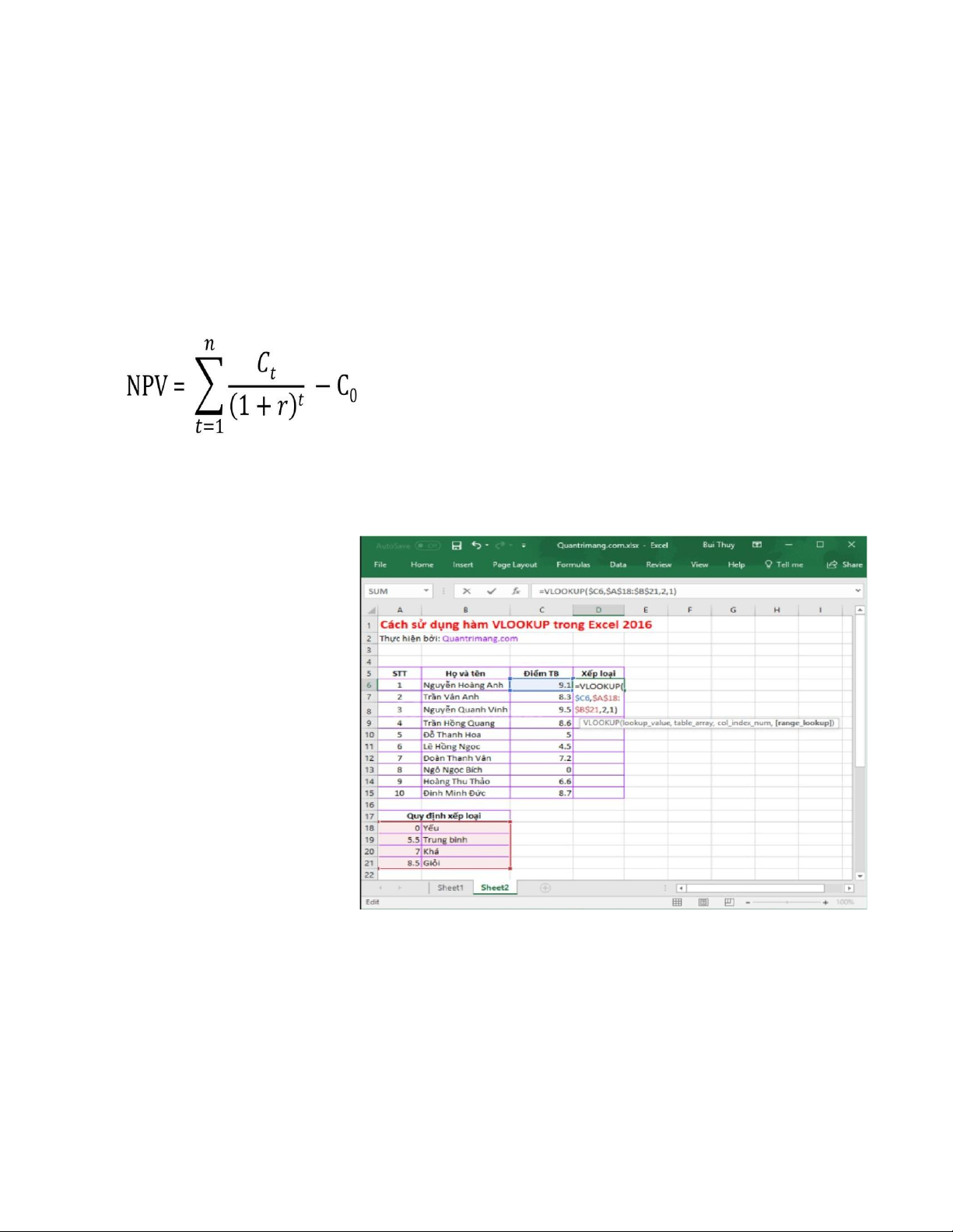 • Hàm NPV: Xác định giá trị hiện tại ròng cho dự án đầu tư