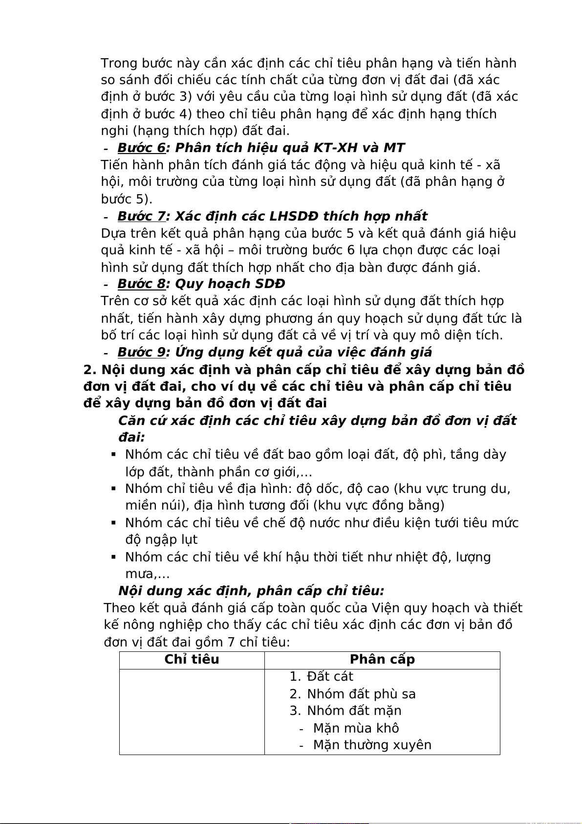 hội, môi trường của từng loại hình sử dụng đất (đã phân hạng ở bước 5). - Bước 7
