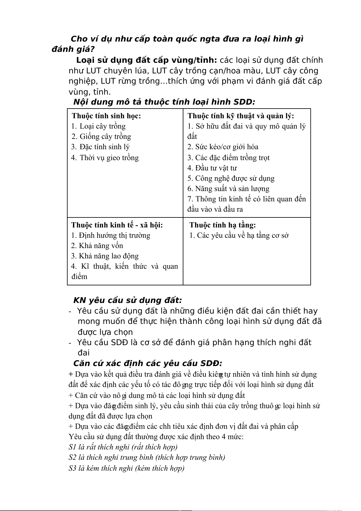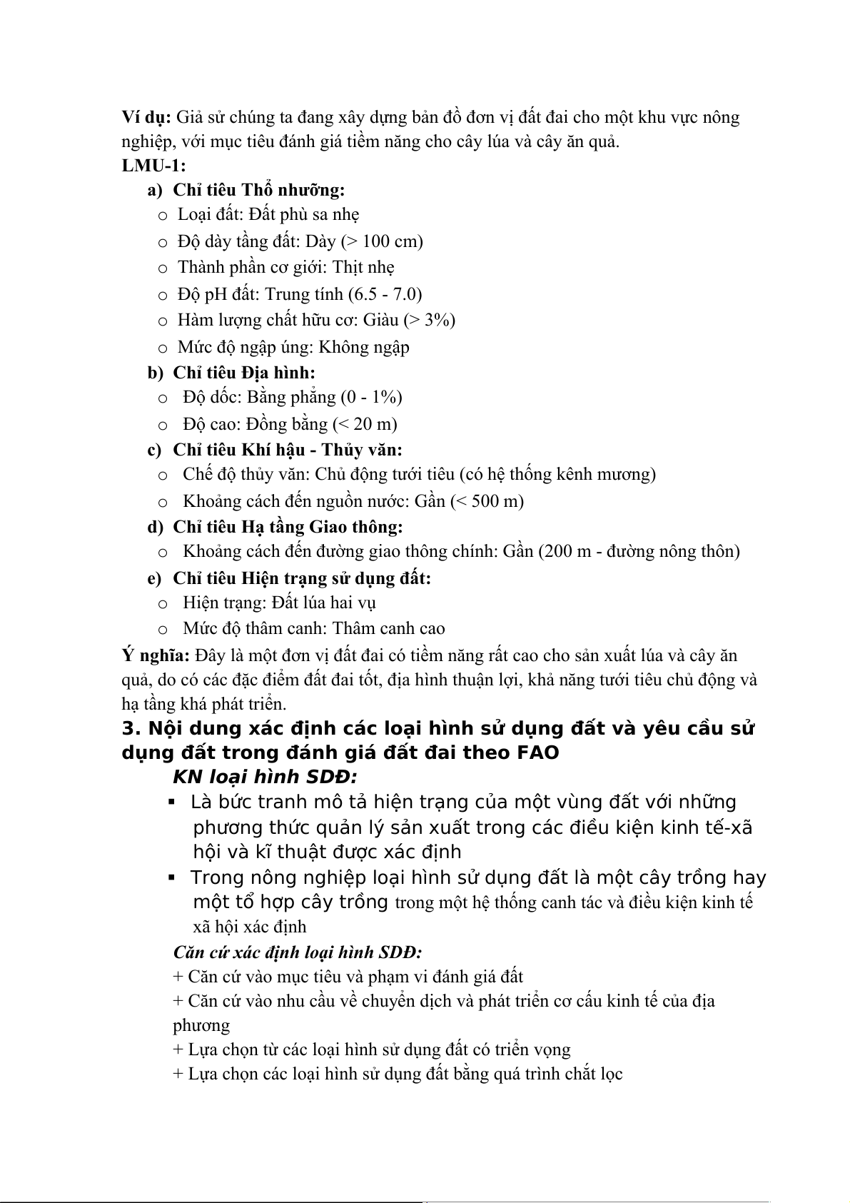 định ở bước 3) với yêu cầu của từng loại hình sử dụng đất (đã xác