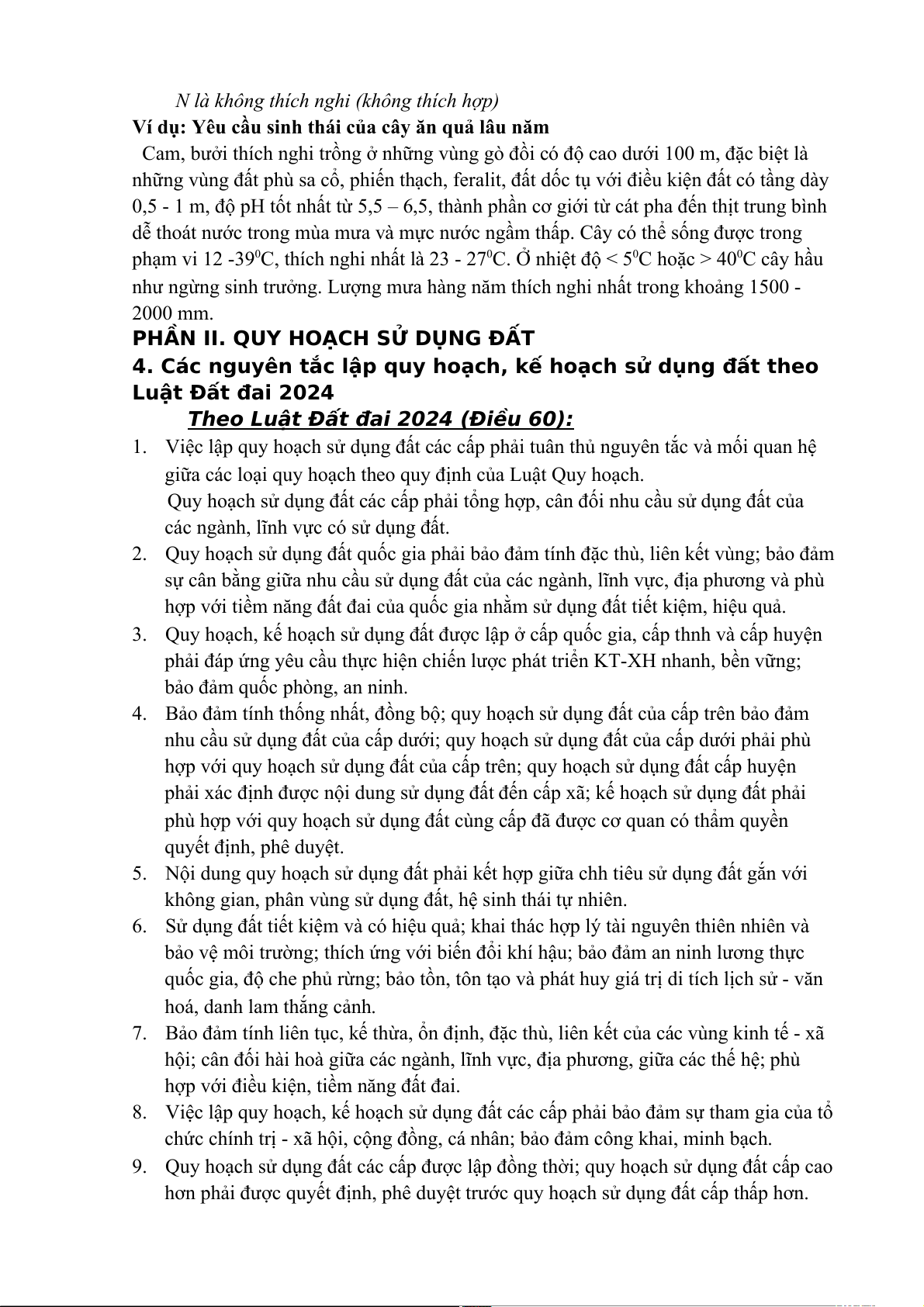 1. Đề ra các quan điểm và mục tiêu sử dụng đất cho từng nhóm đất (nông nghiệp, phi