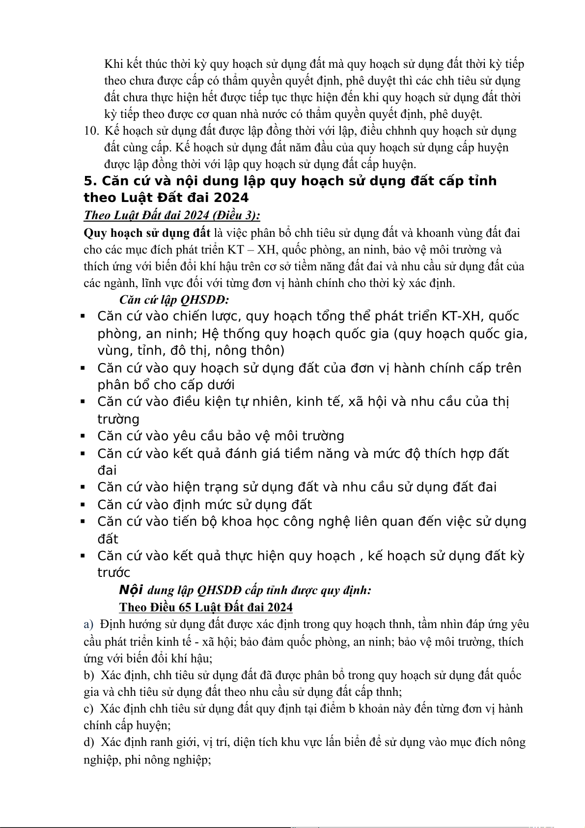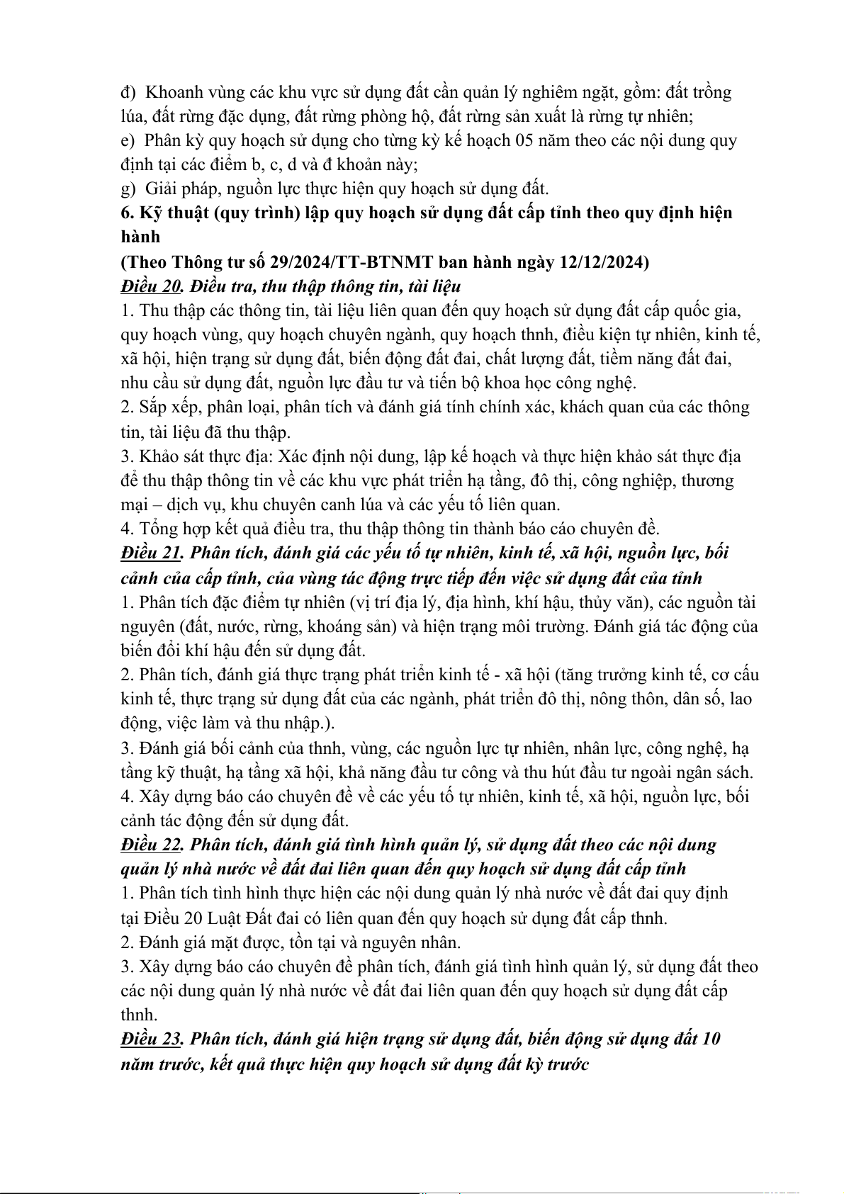 6. Kỹ thuật (quy trình) lập quy hoạch sử dụng đất cấp tỉnh theo quy định hiện hành