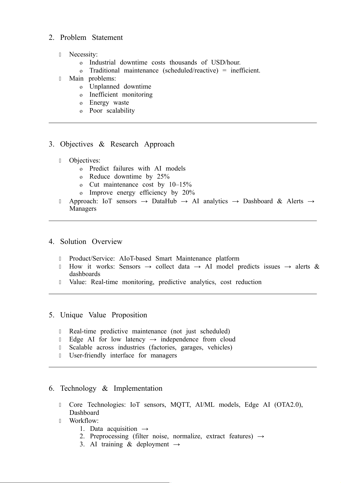 Traditional maintenance (scheduled/reactive) = inefficient. Main problems: o Unplanned downtime o Inefficient monitoring o Energy waste o Poor scalability