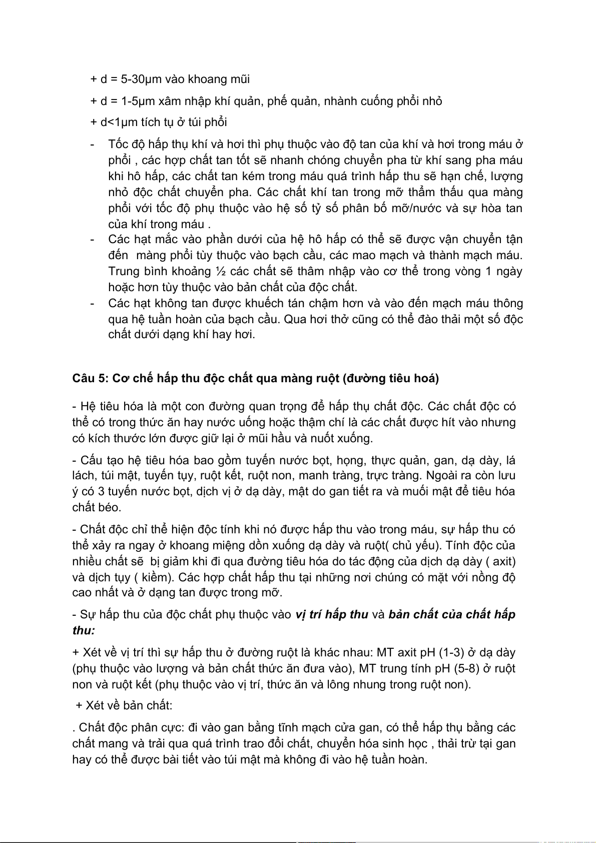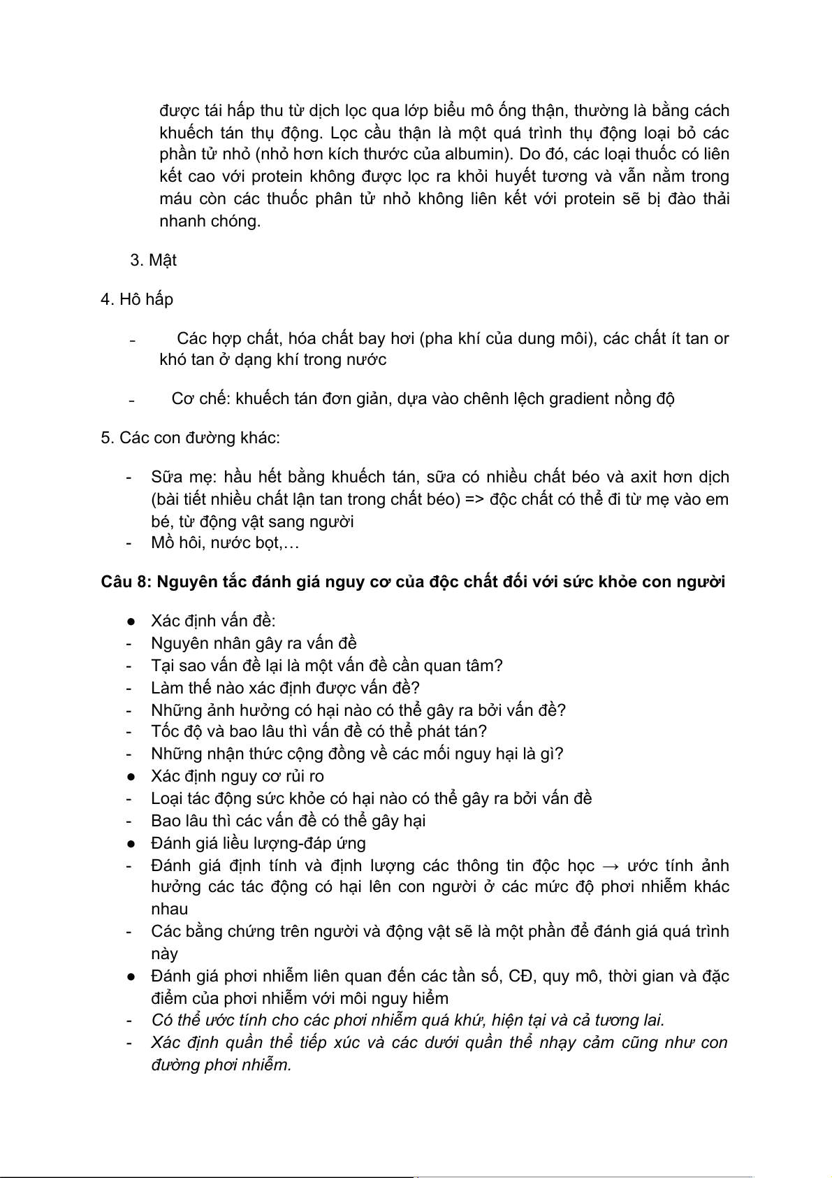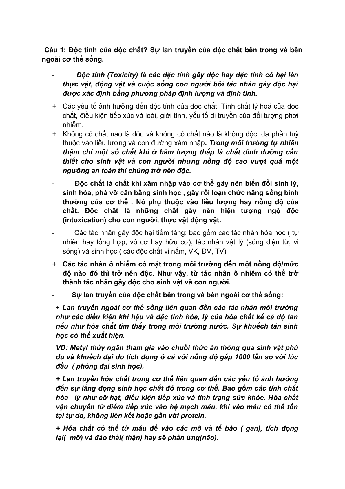 Câu 1: Độc tính của độc chất? Sự lan truyền của độc chất bên trong và bên ngoài cơ thể sống.