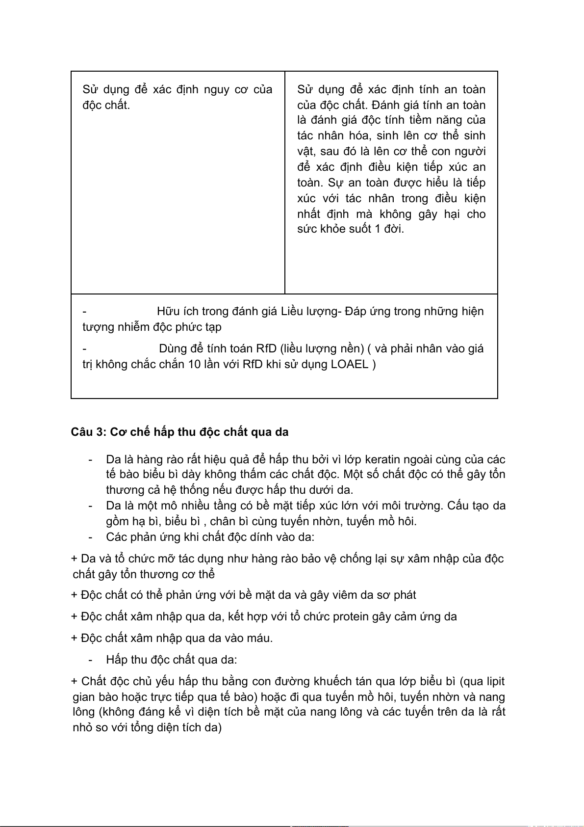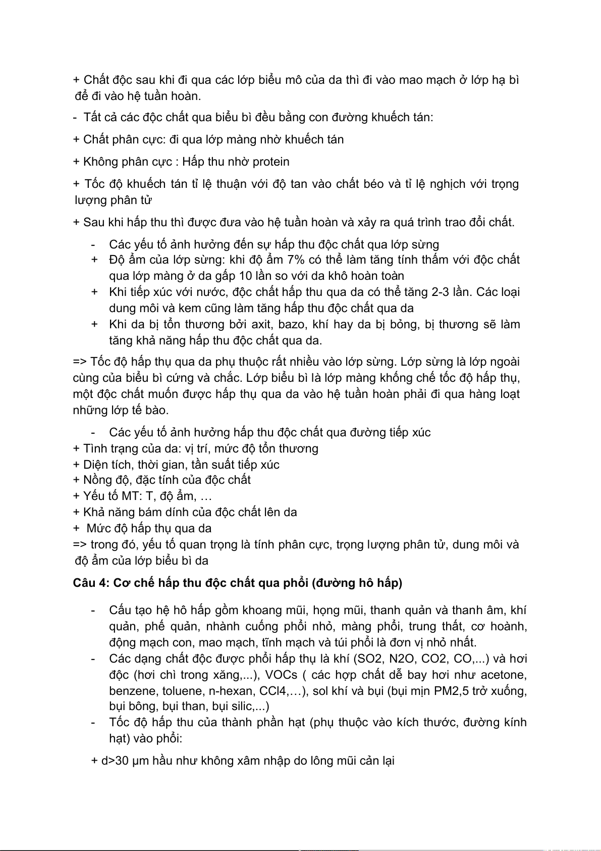Câu 3: Cơ chế hấp thu độc chất qua da -