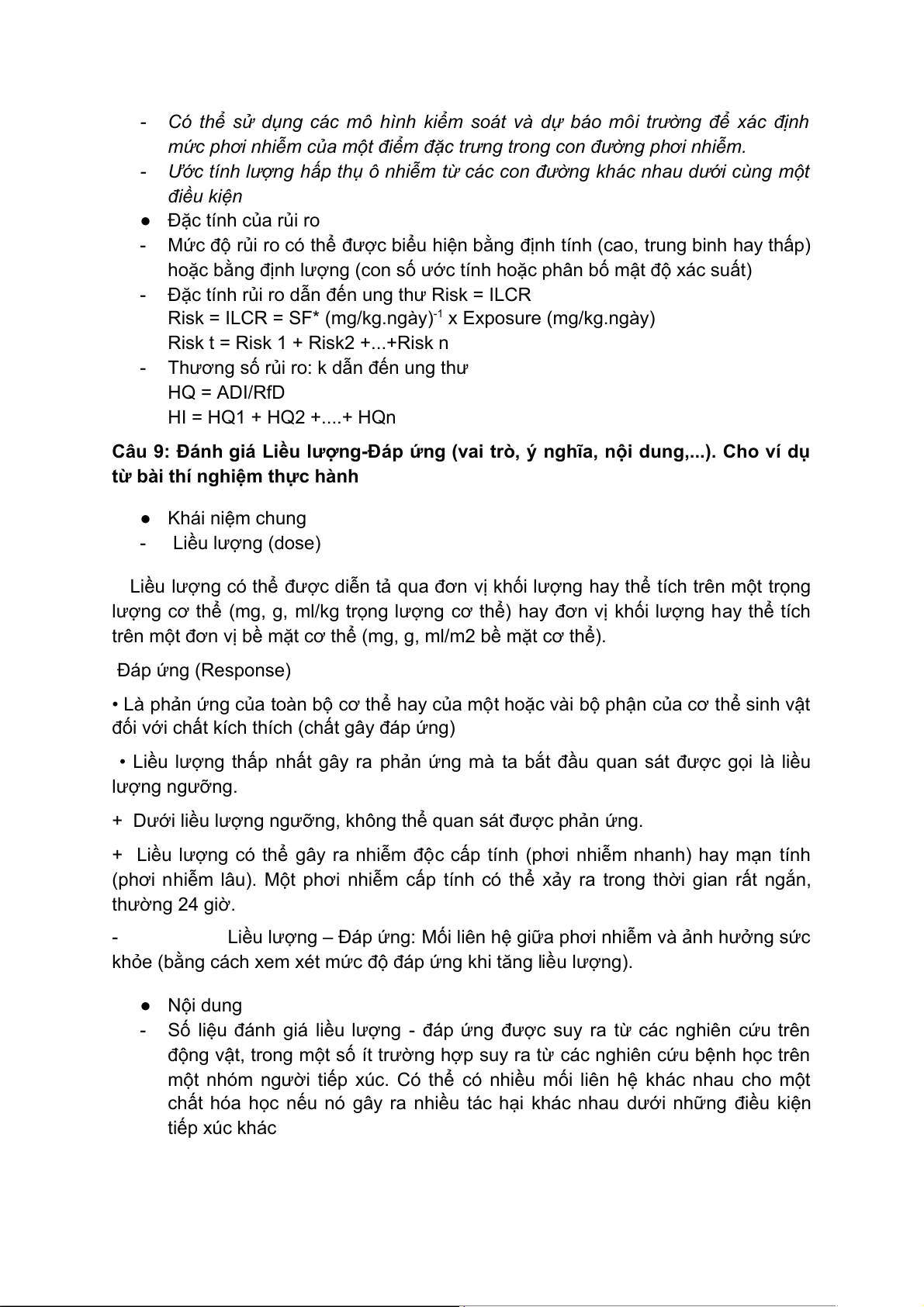 Câu 9: Đánh giá Liều lượng-Đáp ứng (vai trò, ý nghĩa, nội dung,...). Cho ví dụ