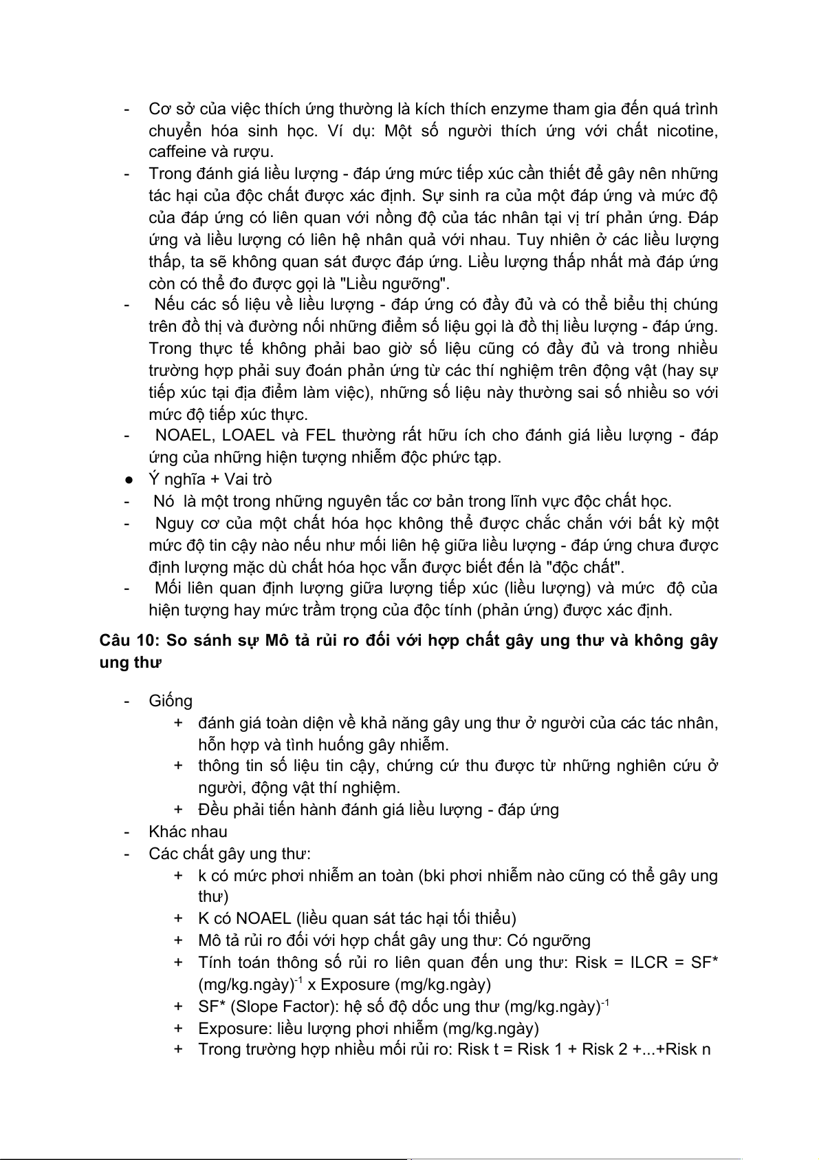 Câu 10: So sánh sự Mô tả rủi ro đối với hợp chất gây ung thư và không gây ung thư - Giống