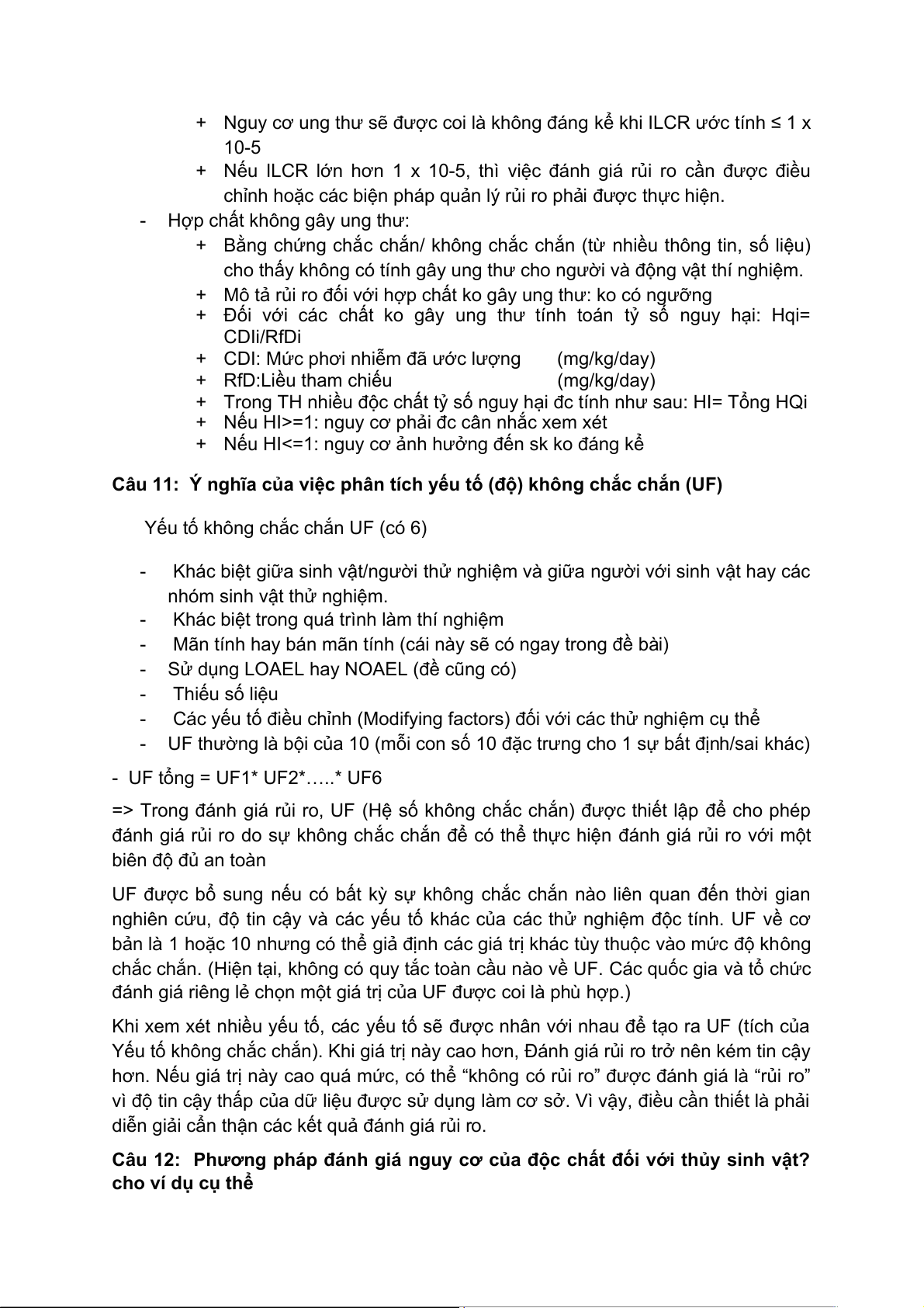 Câu 12: Phương pháp đánh giá nguy cơ của độc chất đối với thủy sinh vật? cho ví dụ cụ thể