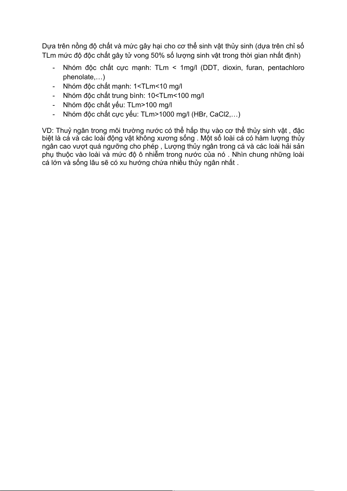 TLm mức độ độc chất gây tử vong 50% số lượng sinh vật trong thời gian nhất định) -