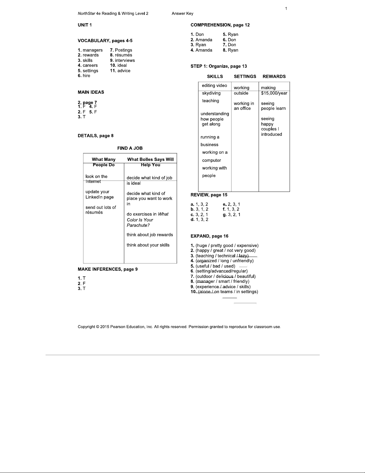 NorthStar 4e RW2 Answer Key: Key Vocabulary & Main Ideas