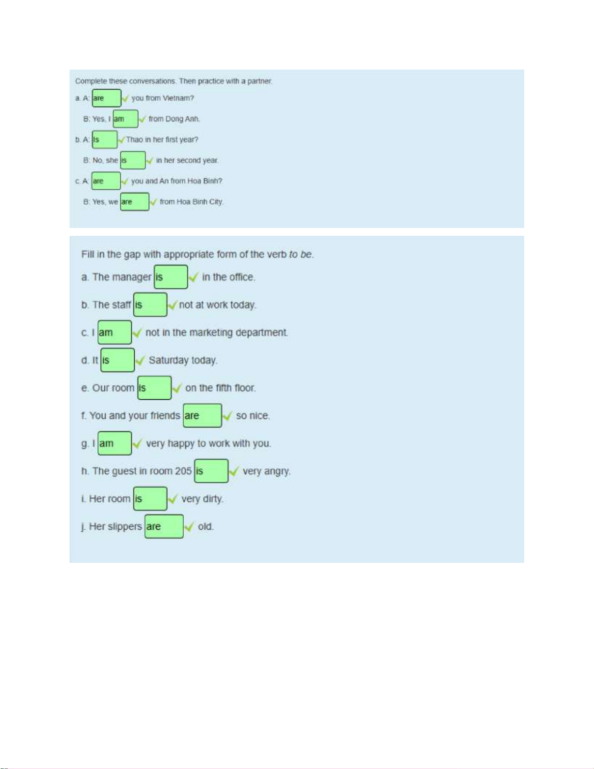 Is Hoa talking ................... her teacher? - Yes, she to is.