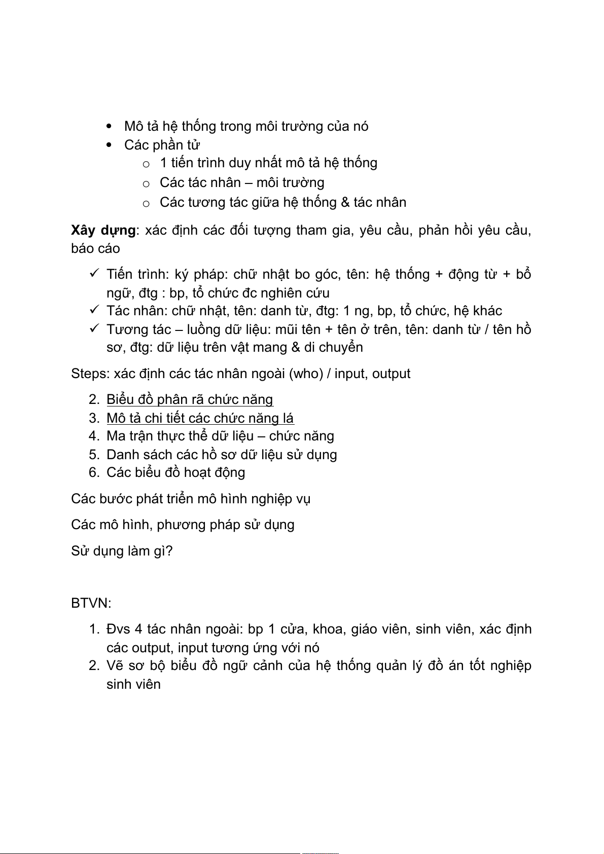 Steps: xác định các tác nhân ngoài (who) / input, output