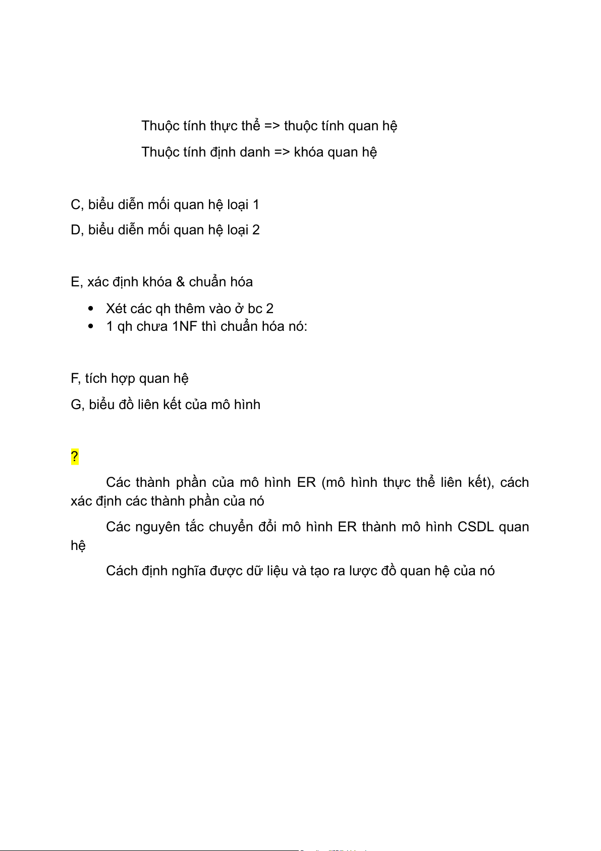 1 qh chưa 1NF thì chuẩn hóa nó: F, tích hợp quan hệ