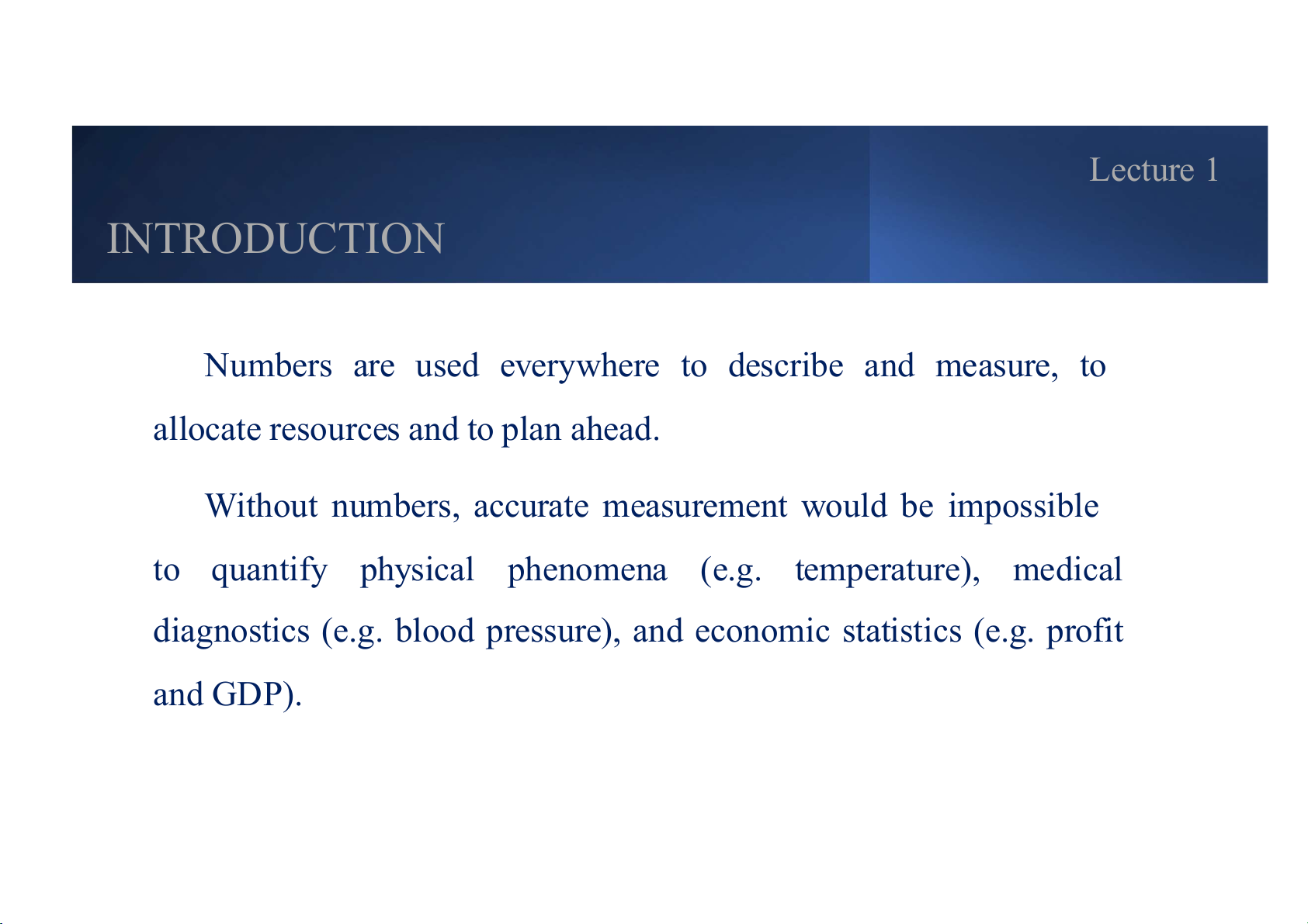Lecture 1 NUMBERS QUANTITATIVE METHODS AND OPERATIONS Lecture 1 LEARNING OBJECTIVES