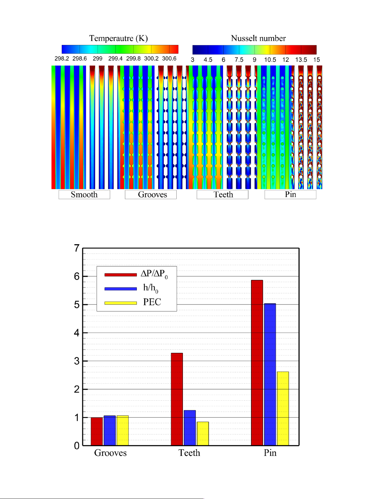 improved heat transfer performance. Conversely, the channel design with Teeth showed the poorest hydraulic