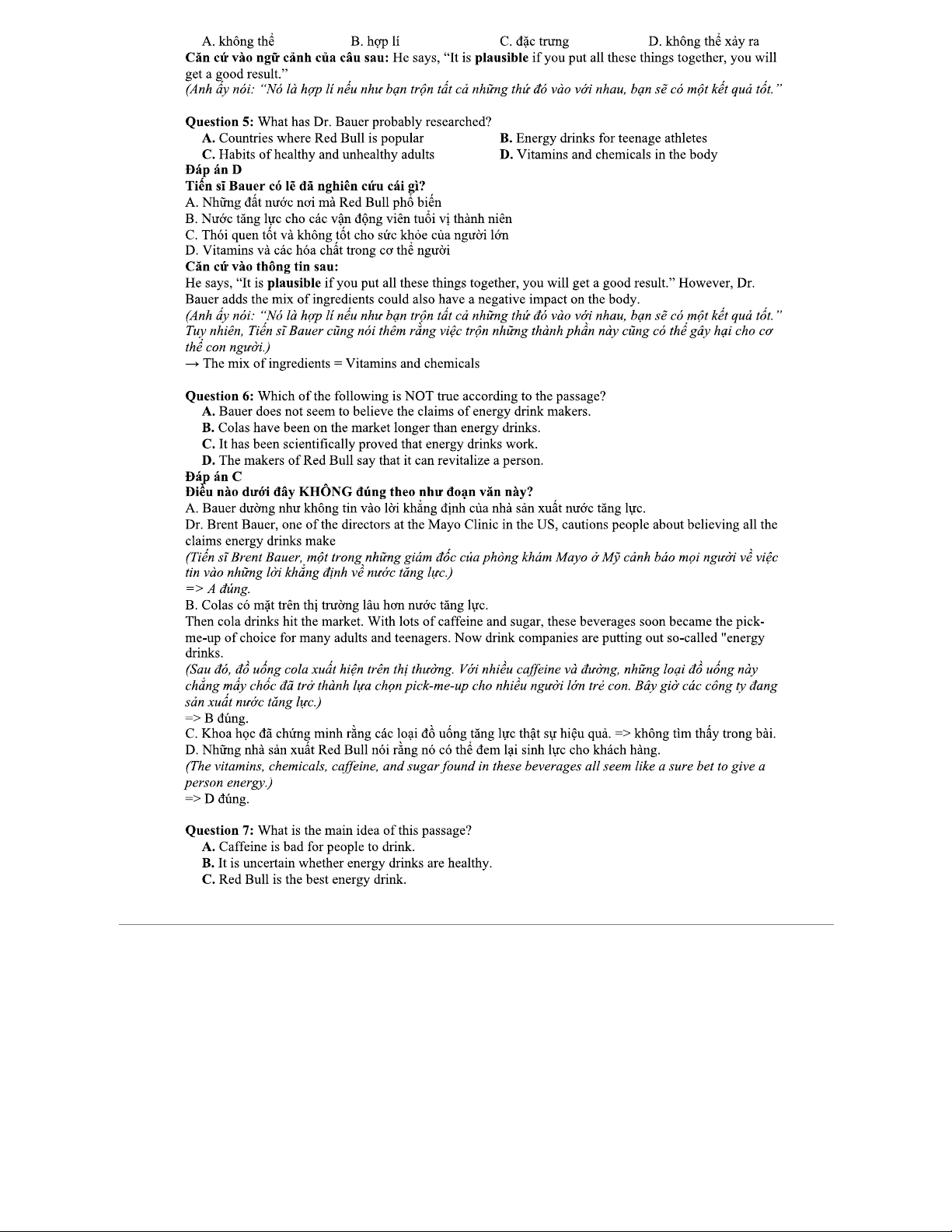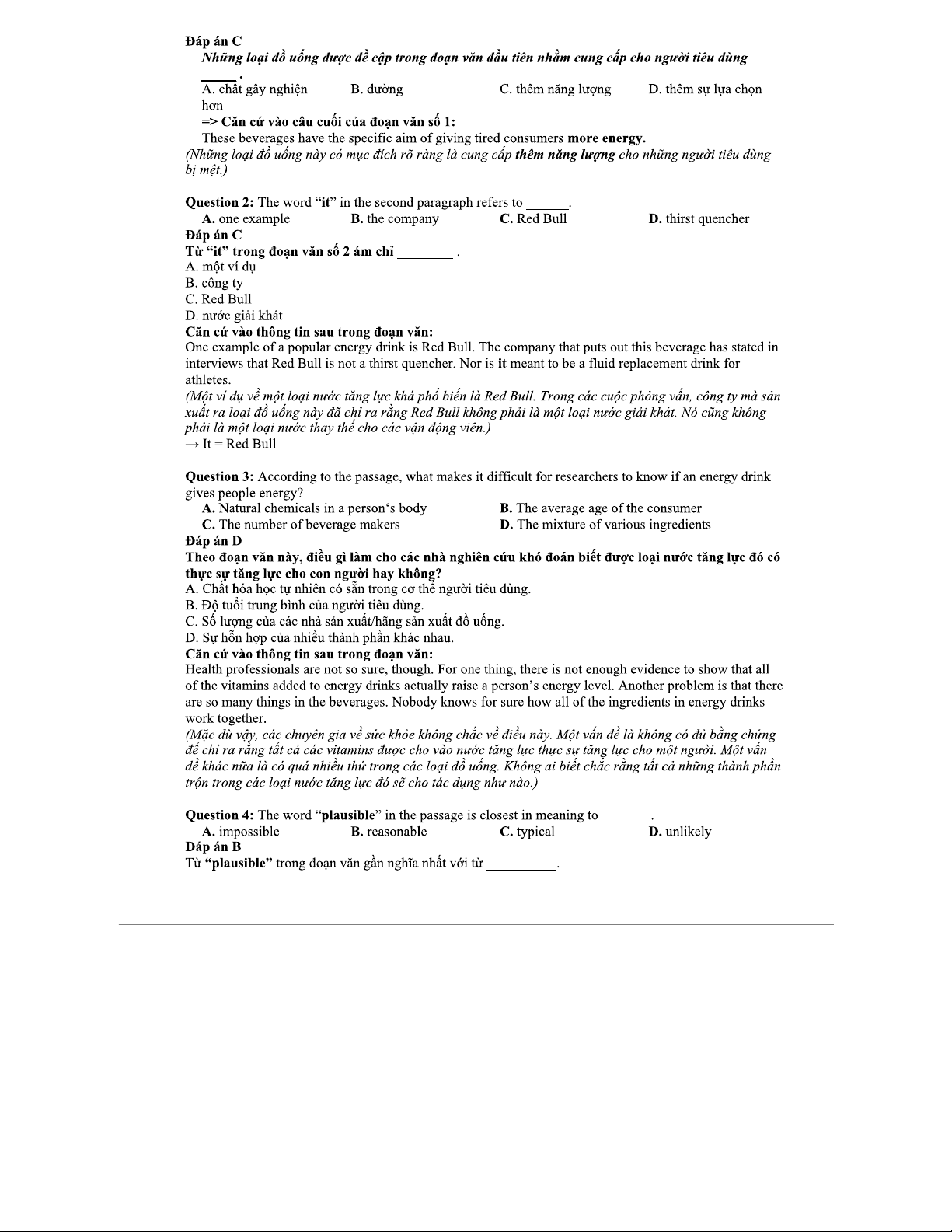 Nước Tăng Lực: Phân Tích & Đáp Án Passage 1 (KHMT 101)