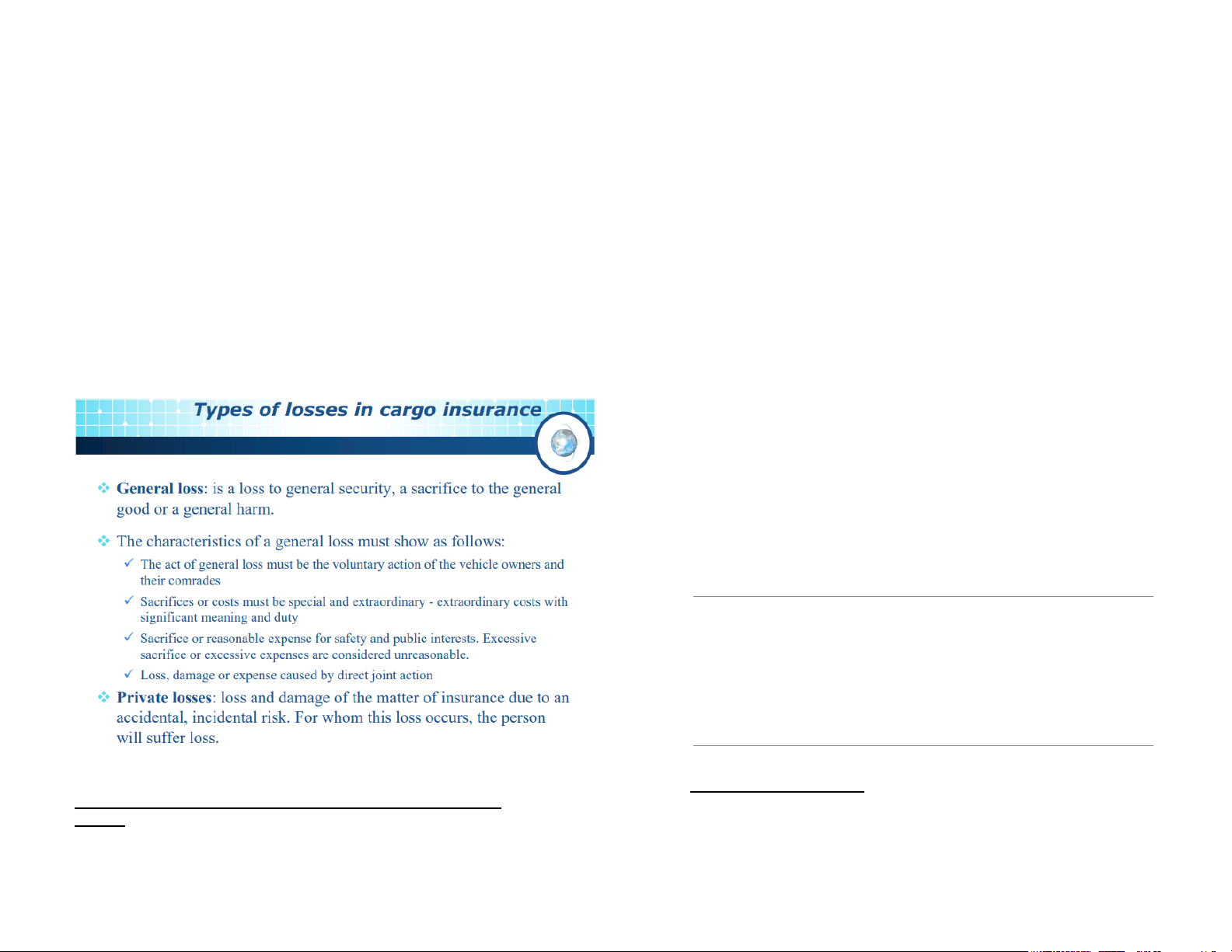 1. General loss (Tổn thất chung – tổn thất tổn thất hy sinh chung / General Average) Dịch: