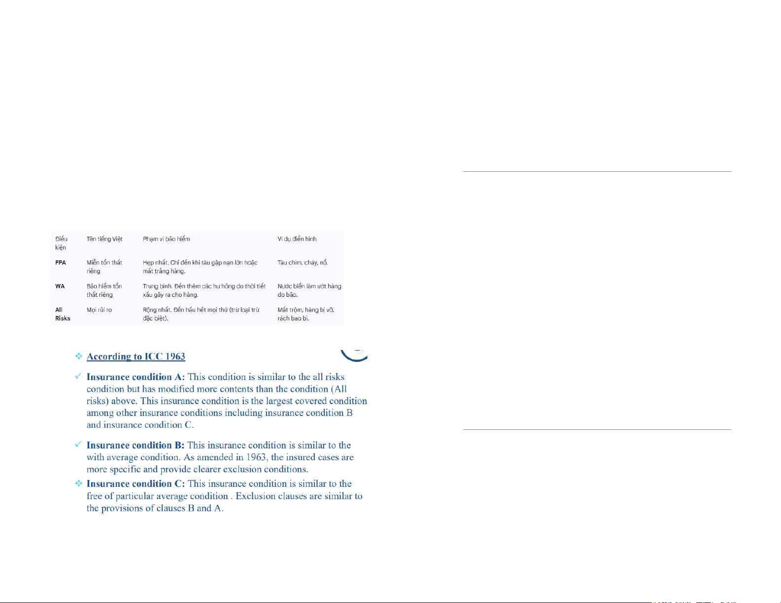 Clauses), và mức phí dựa trên rủi ro vận chuyển.