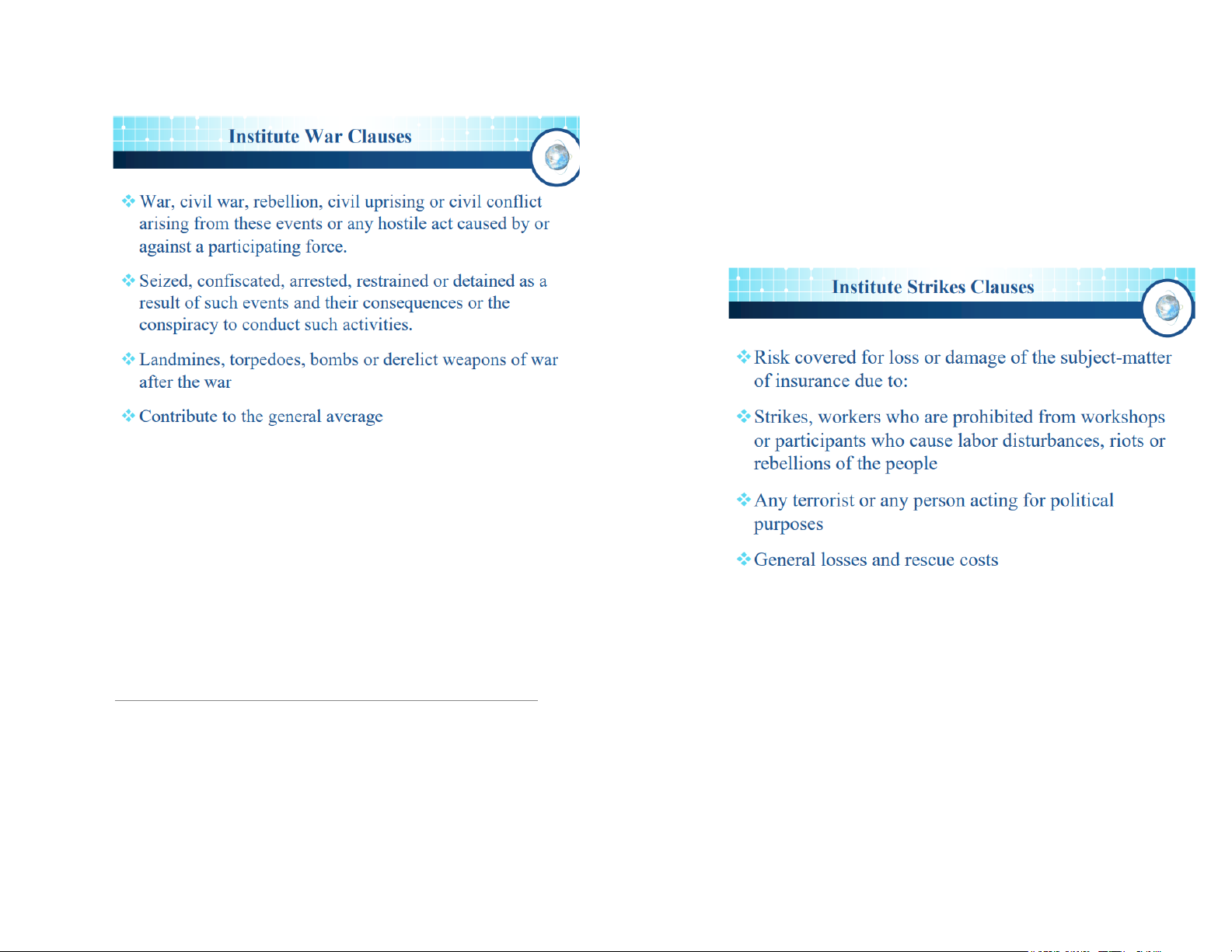 ○ Bổ sung: Bao gồm bảo hiểm chiến tranh, bảo hiểm đình công, bảo hiểm