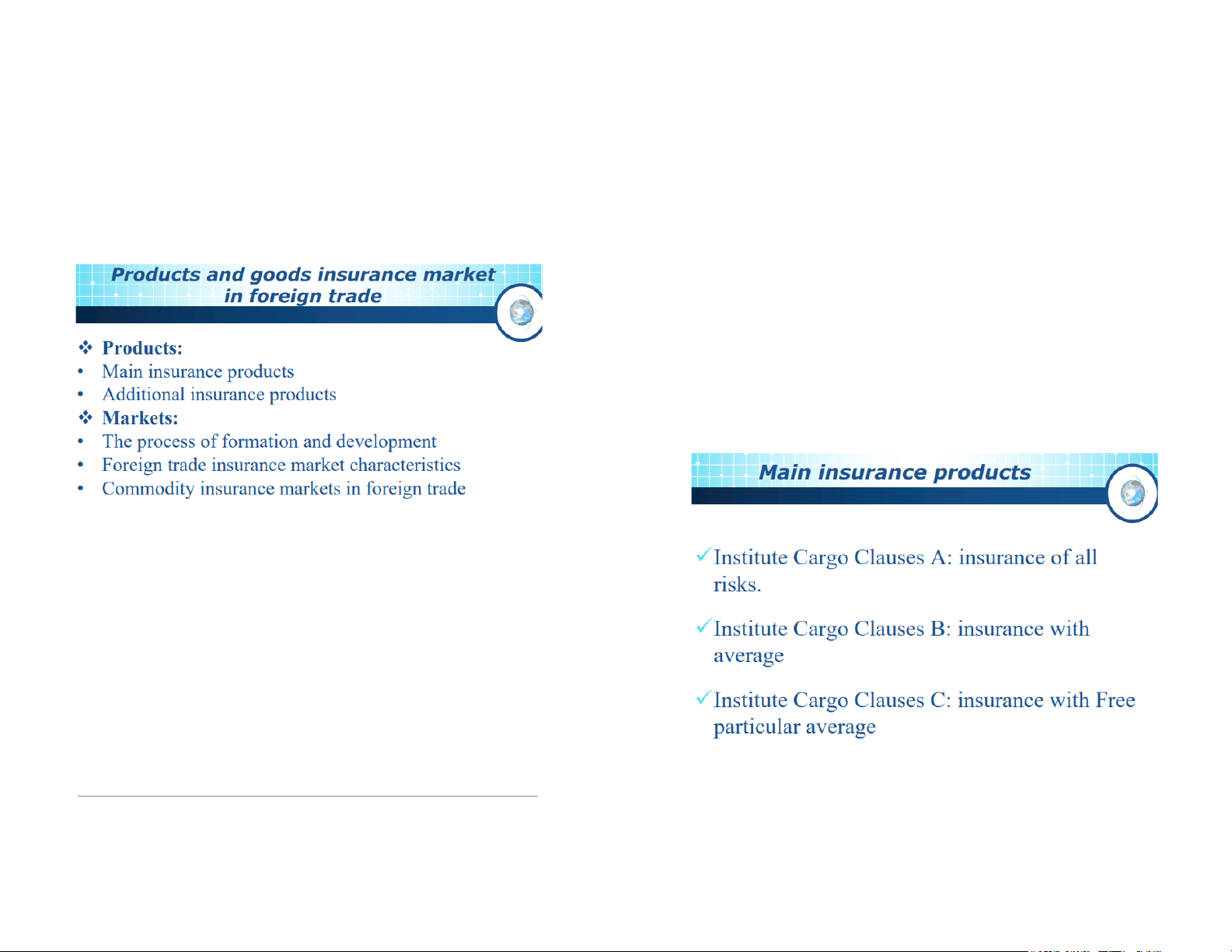 ○ Thị trường bảo hiểm hàng hóa trong thương mại quốc tế: Bao gồm