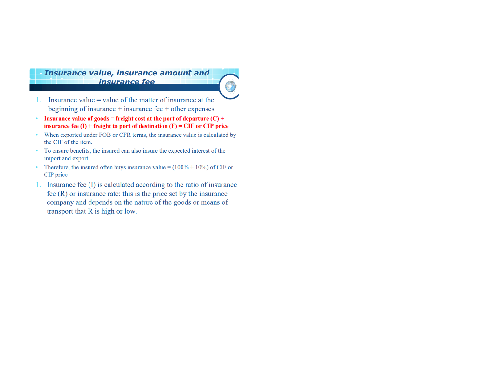 ● Phí bảo hiểm (Insurance fee): số tiền mà người mua phải trả cho công ty bảo