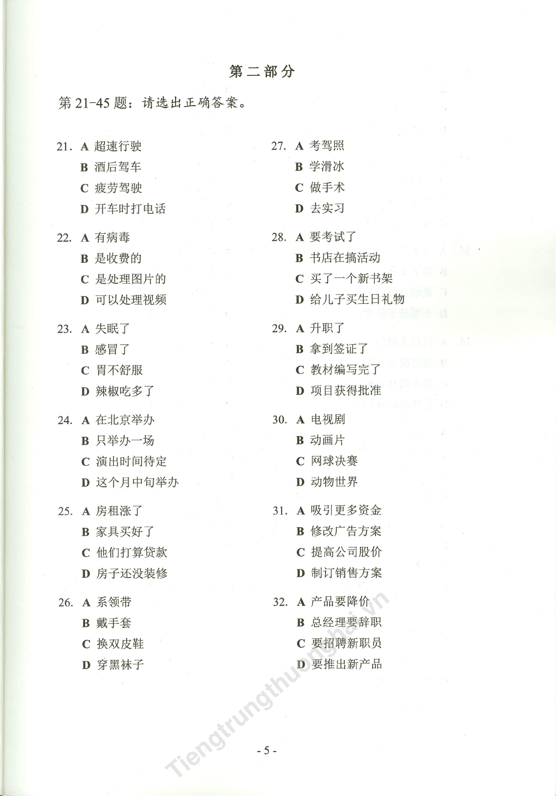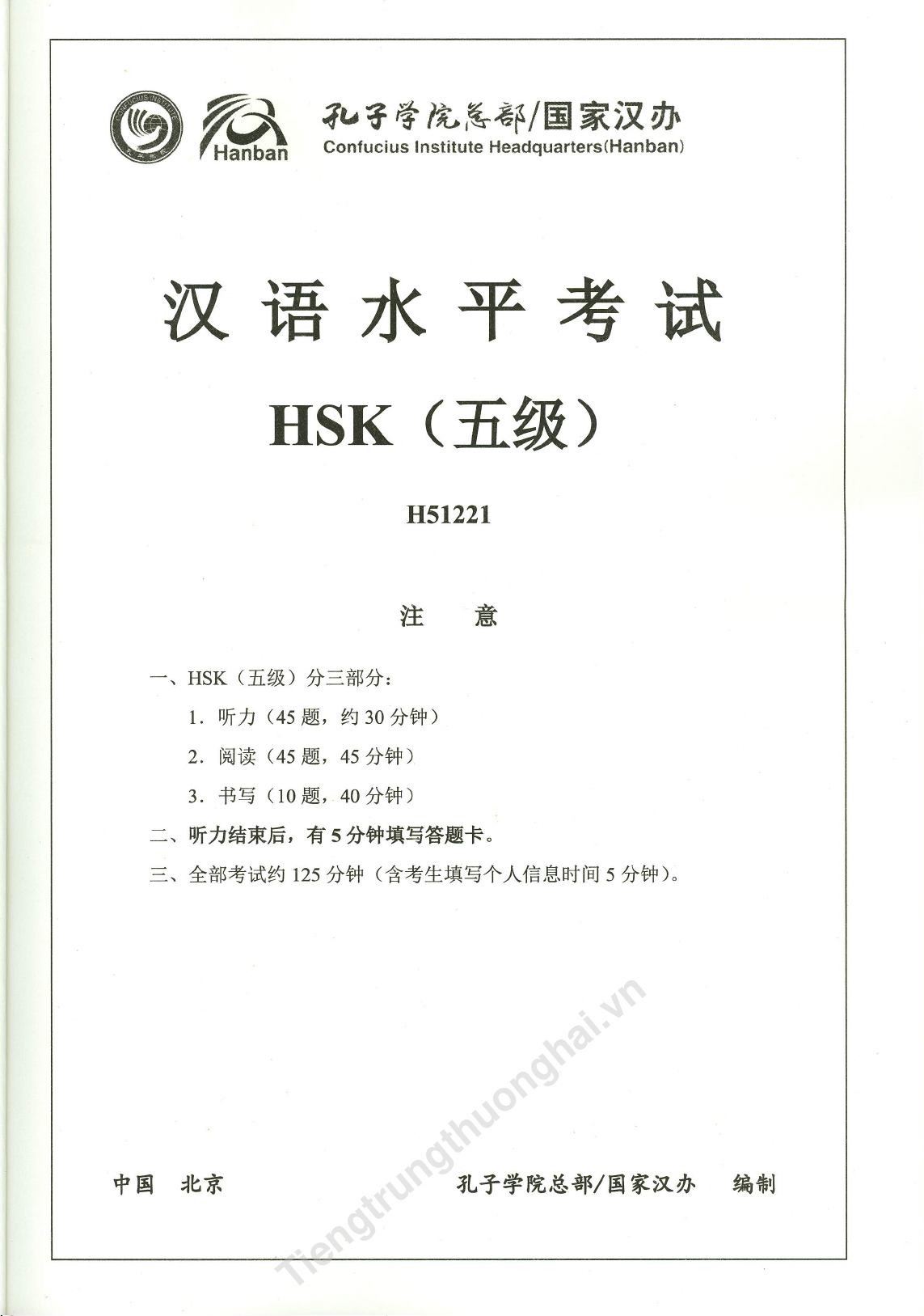 Official Examination Papers of HSK (Level 5) | Trường Đại học Hà Nội