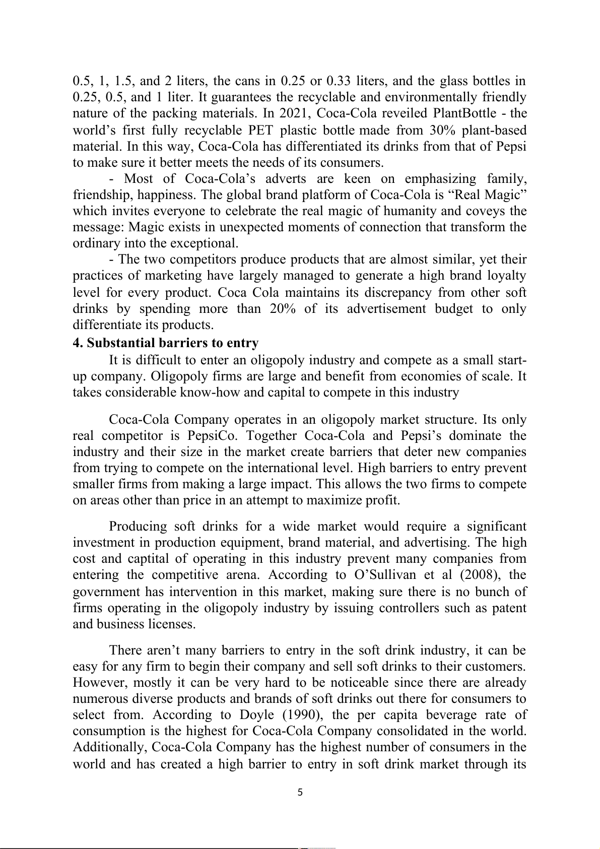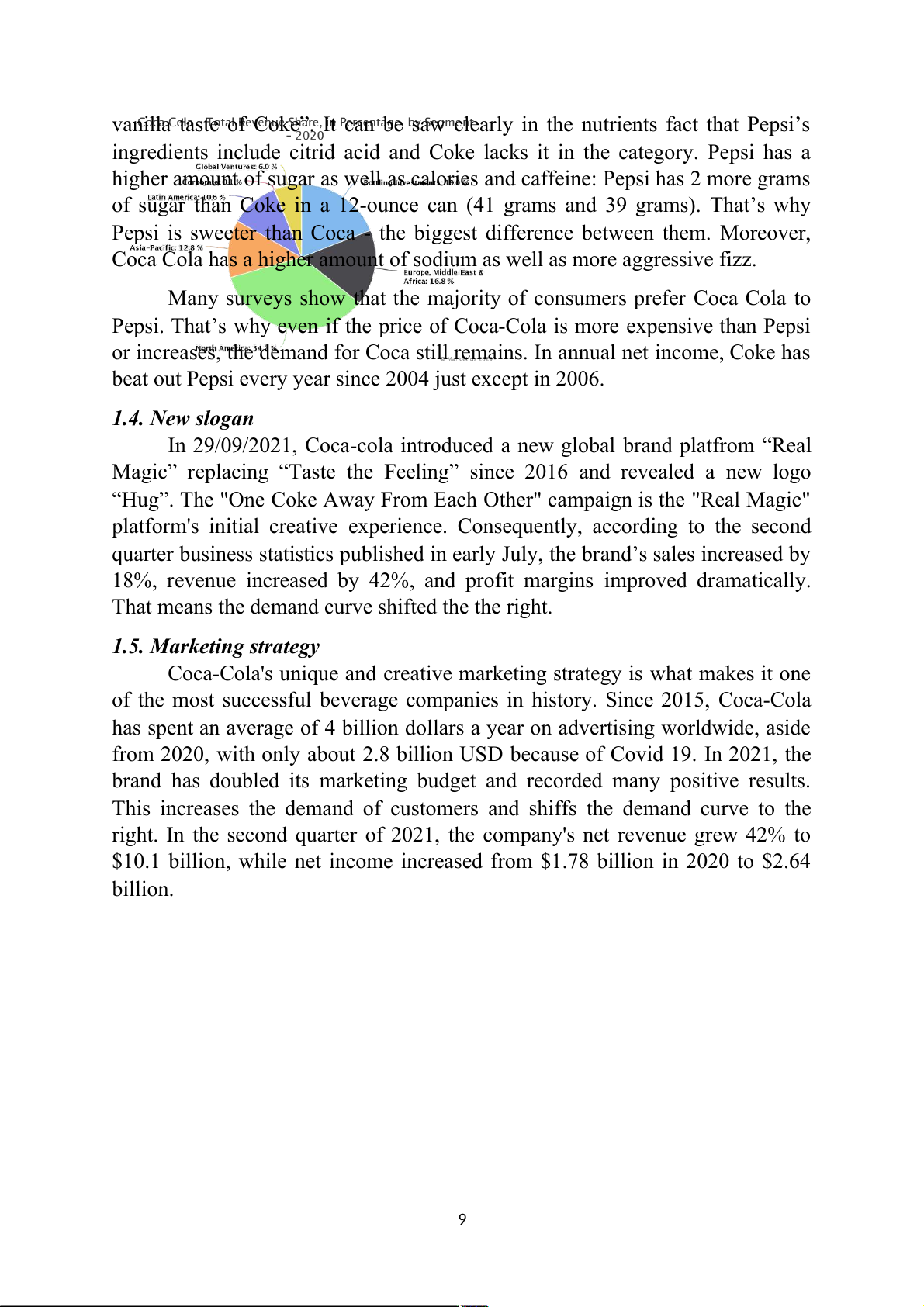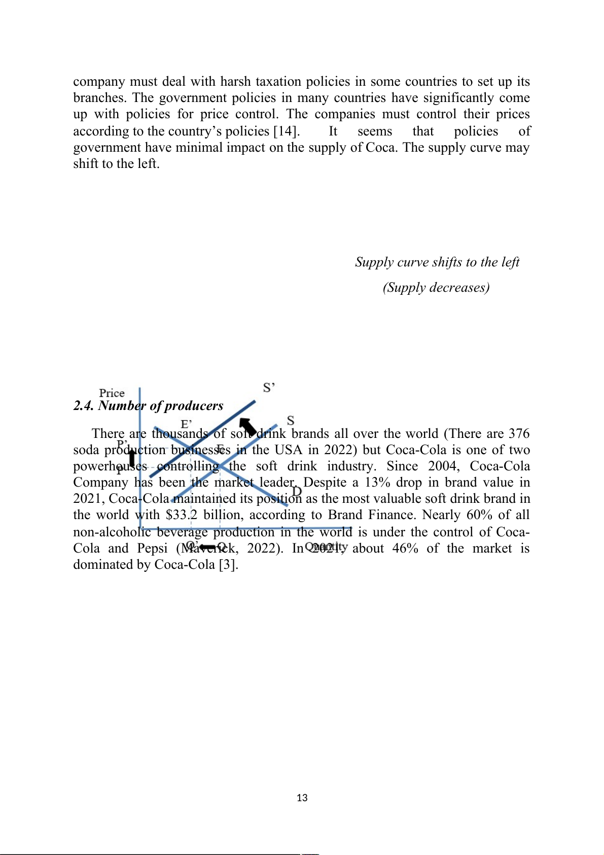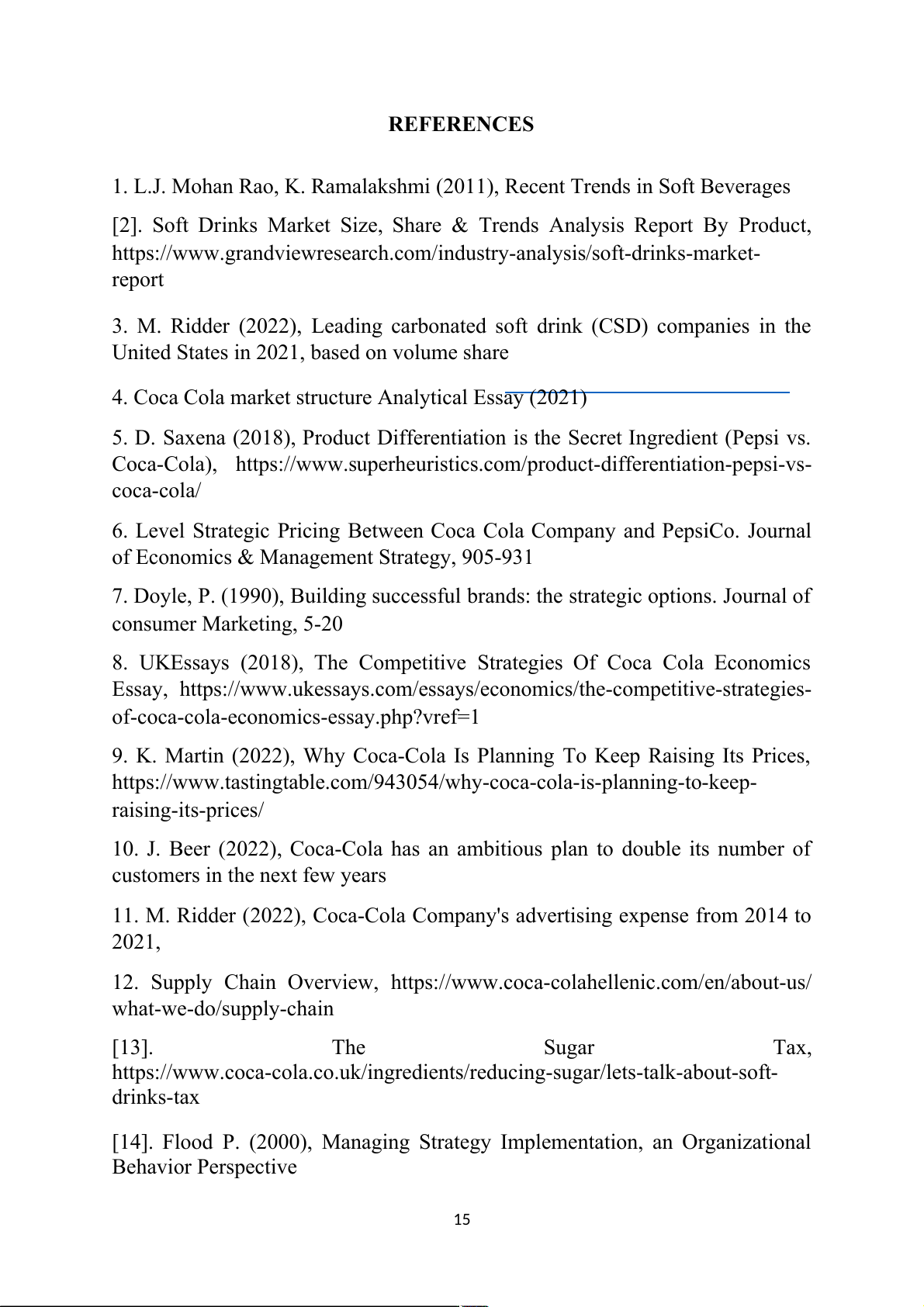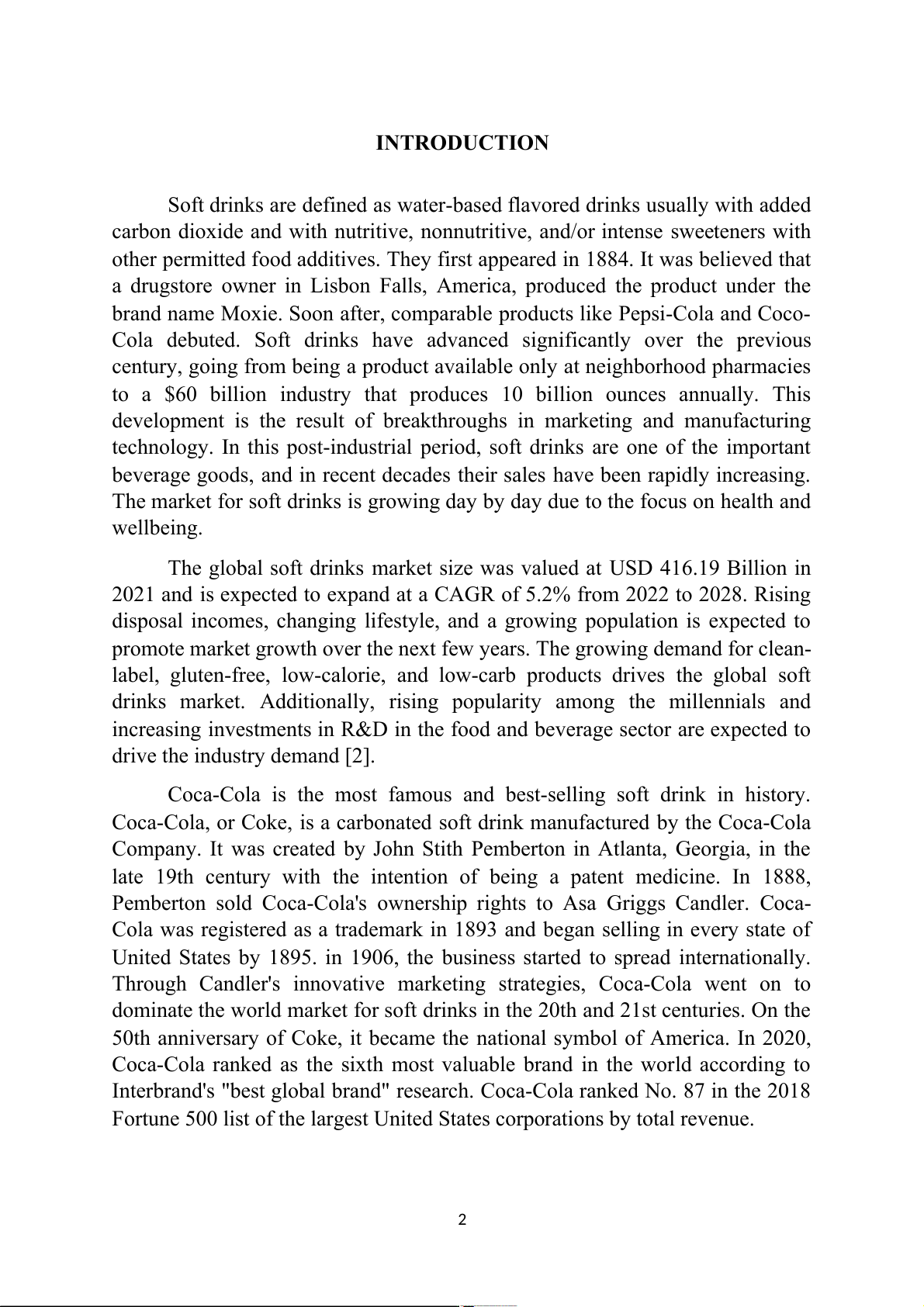 Cola and Pepsi (Maverick, 2022). In 2021, about 46% of the market is dominated by Coca-Cola [3]. 13 CONCLUSION