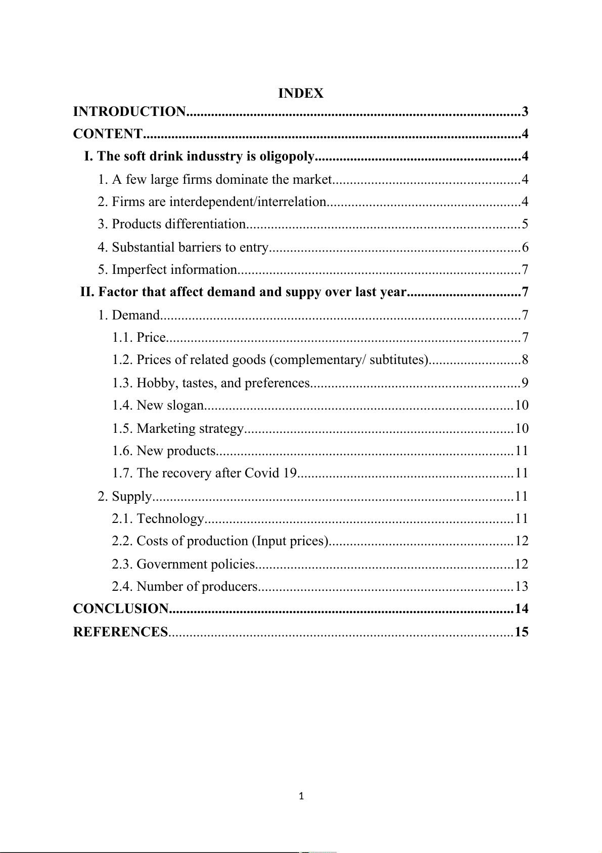 MICROECONOMICS ASSIGNMENT FINAL GROUP PROJECT COCA-COLA Class: EBBA 14.1 TEAM 3 Phan Thi Mai Anh Nguyen Khanh Linh Tran Huyen Nga Ho Thu Nga Nguyen Ha Phuong Ha Noi - 12/2022 INDEX