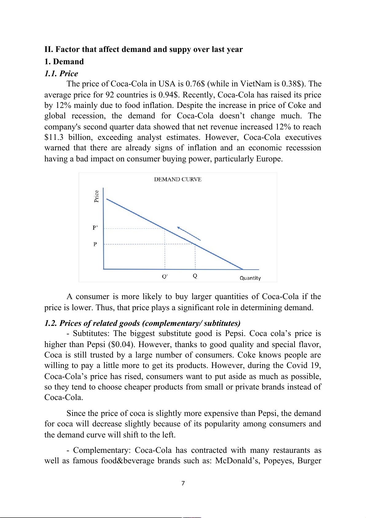 Coca-cola and a slightly decrease in supply. Coca-Cola has moved to produce