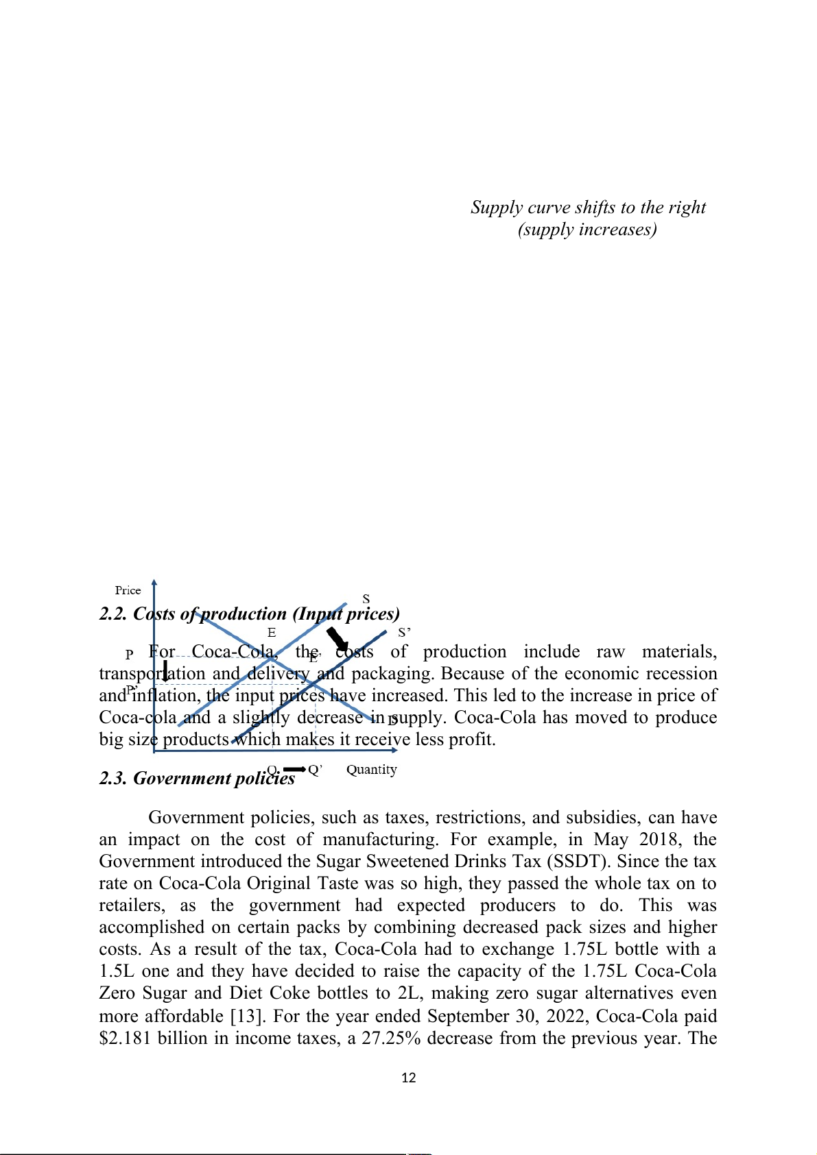 government have minimal impact on the supply of Coca. The supply curve may shift to the left.