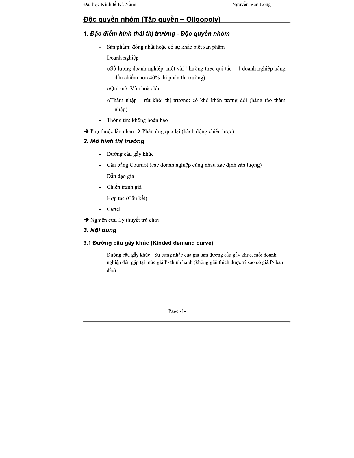 Oligopoly: Tài liệu Kinh Tế Vi Mô - Các Mô Hình và Chiến Lược